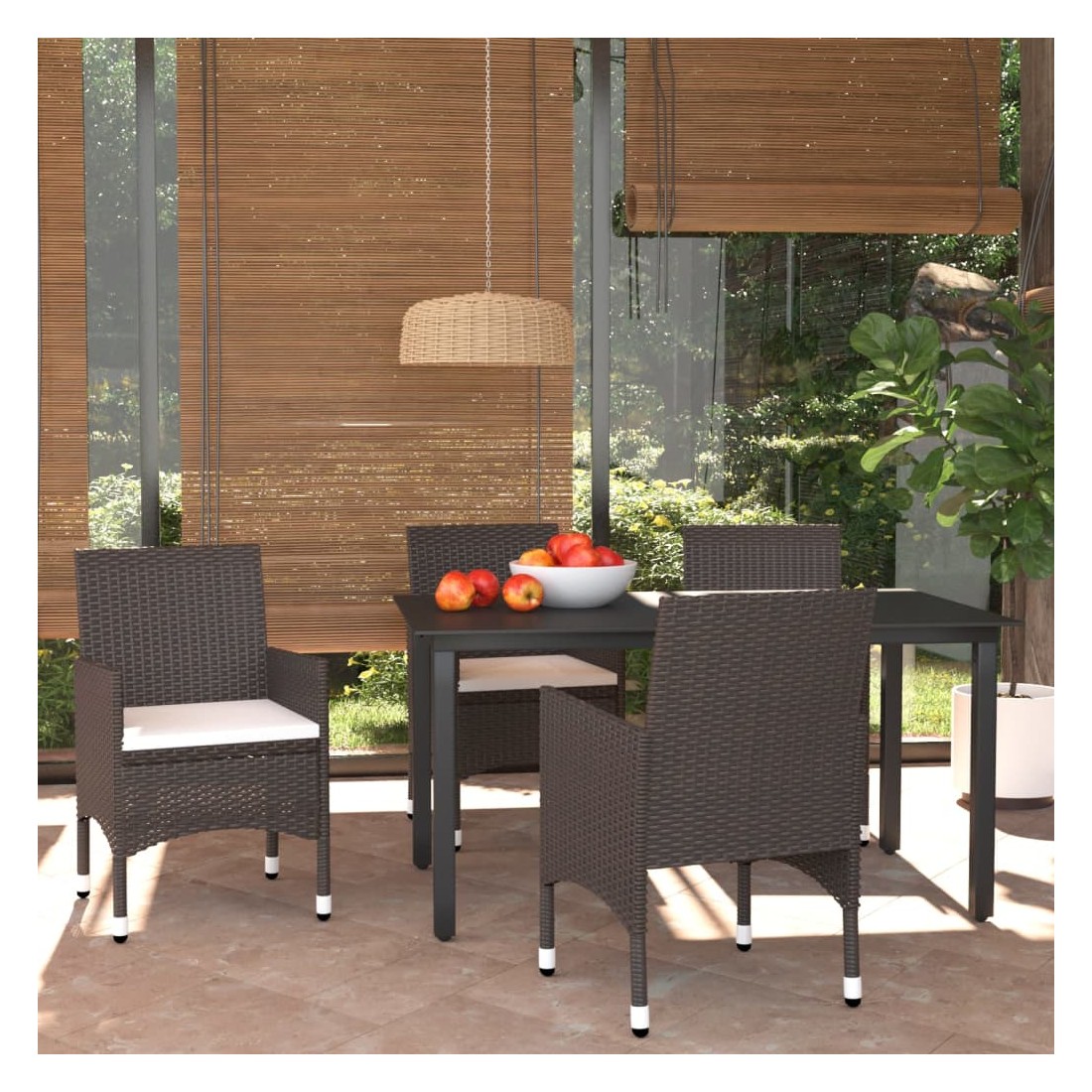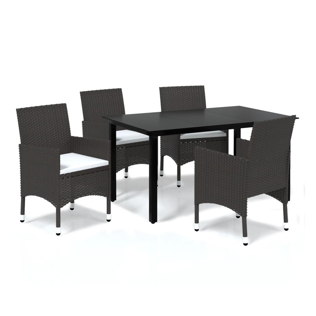 Ensemble à manger de jardin et coussins 5 pcs Poly rotin Marron