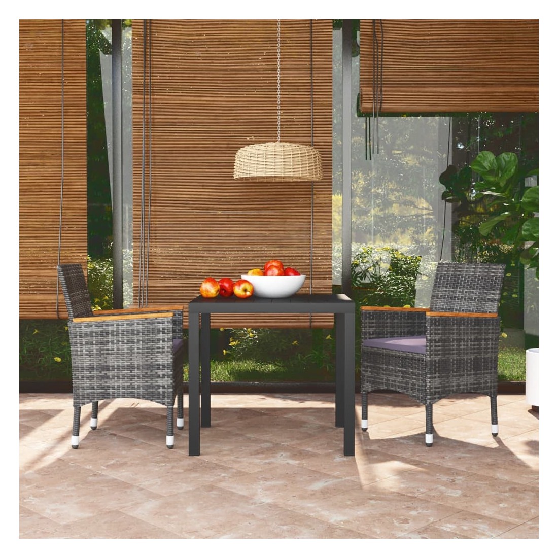Cet ensemble de salle à manger de jardin est une combinaison parfaite de style et de fonctionnalité et est destiné à être le point de mire de votre jardin, balcon ou patio. Avec un cadre en acier robuste enveloppé de résine tressée résistante aux intempéries, les chaises de jardin sont à l'épreuve de la rouille et de la moisissure, offrant des années de détente de qualité. Les accoudoirs sont joliment décorés avec du bois d'acacia massif avec une finition à l'huile naturelle, ce qui apporte un sentiment de charme rustique. La table d'extérieur présente un dessus de table en WPC, facile à nettoyer et adapté à une utilisation à l'extérieur. Le cadre en aluminium assure également la stabilité et la robustesse. De plus, les coussins bien rembourrés offrent un confort ultime pendant votre temps assis. Cet ensemble de salle à manger de patio est facile à déplacer grâce à sa construction légère. Remarque : afin de prolonger la durée de vie des meubles d'extérieur, nous vous recommandons de les protéger avec une housse imperméable.