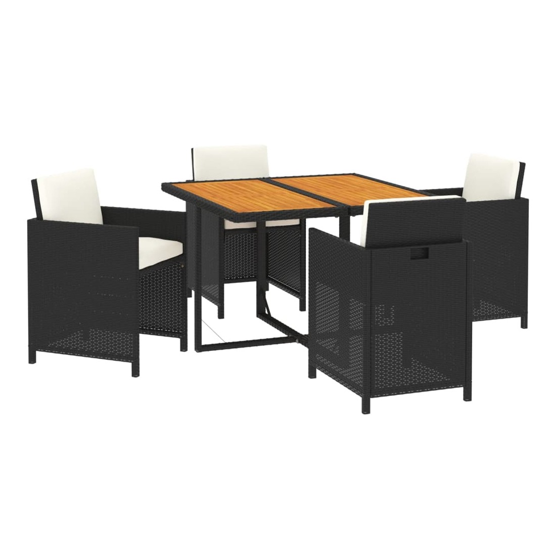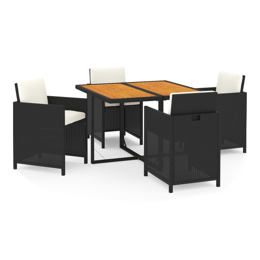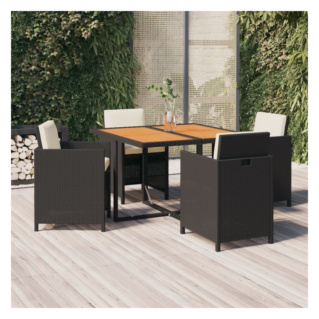 Ensemble à dîner de jardin avec coussins 5 pcs poly rotin noir