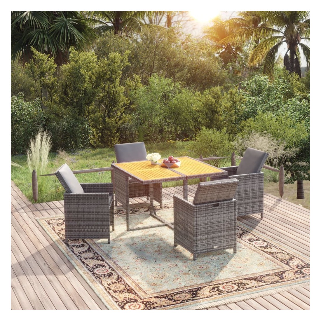 • Matériau : résine tressée, acier enduit de poudre, bois d'acacia massif avec finition à l'huile naturelle