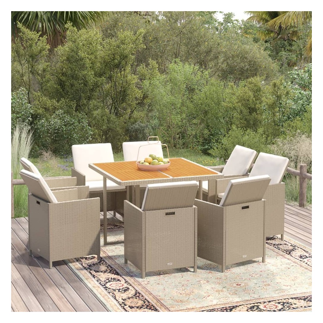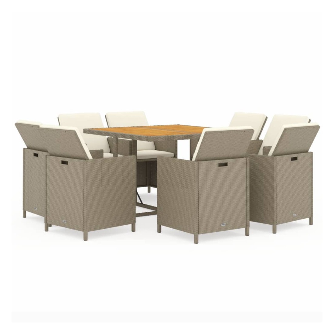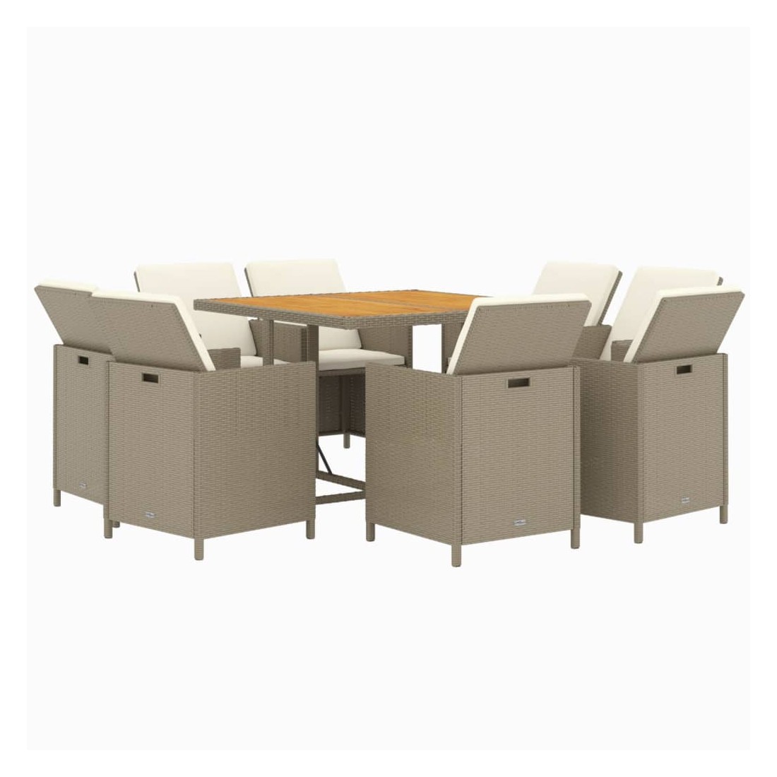 Ensemble à manger de jardin et coussins 9 pcs Poly rotin Beige