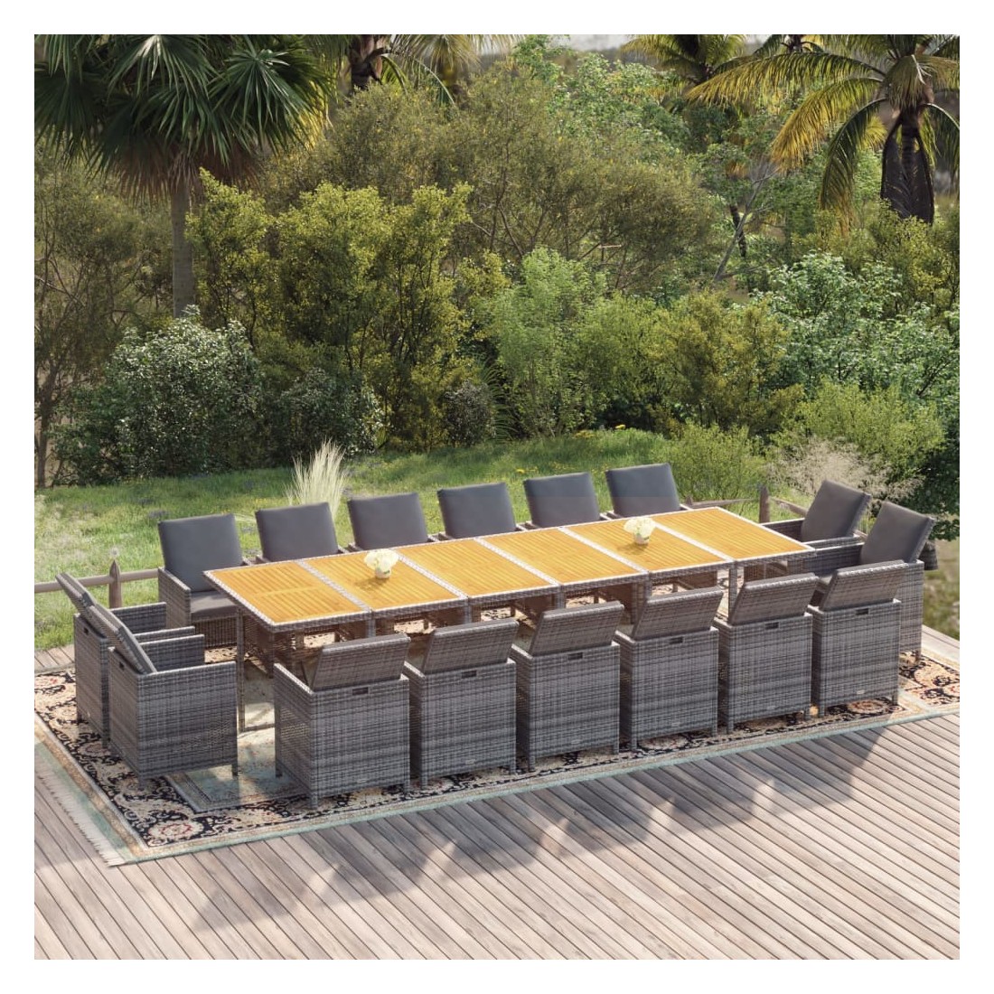 - Matériau : résine tressée, acier enduit de poudre, bois d'acacia massif avec finition à l'huile naturelle