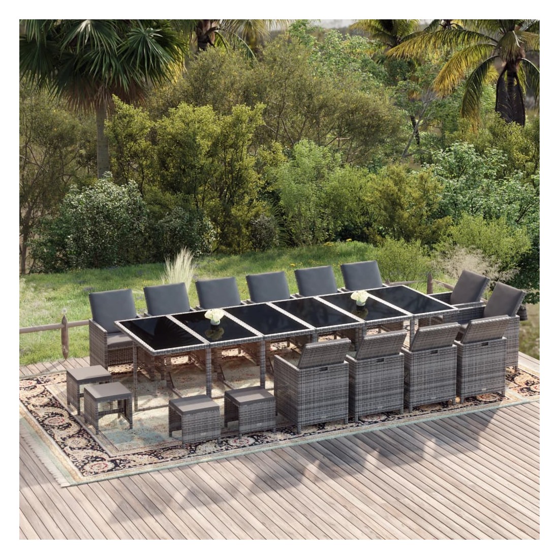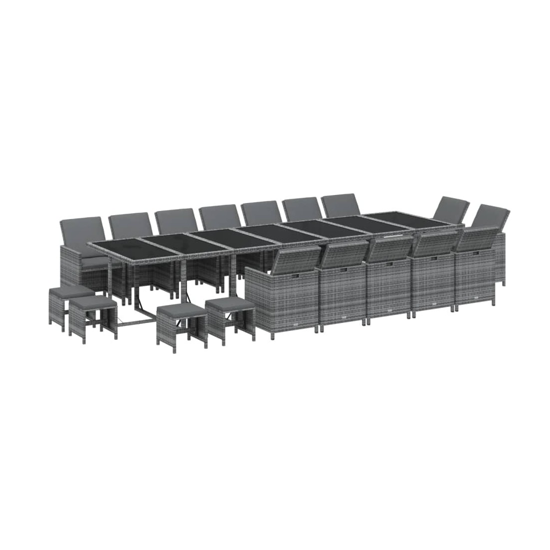 Ensemble à manger de jardin coussins 19 pcs Résine tressée Gris