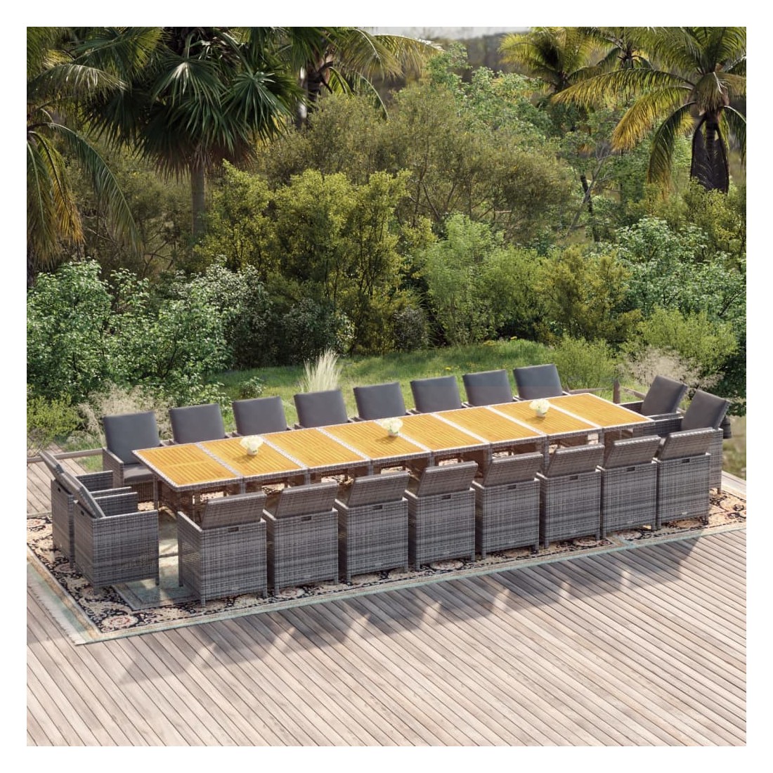 Cet ensemble de salle à manger de jardin en résine tressée, au design élégant et unique, est un excellent choix pour manger et vous détendre dans votre espace de vie extérieur. Matériau pratique : enveloppé de résine tressée résistante aux intempéries, cet ensemble de salle à manger d'extérieur est facile à nettoyer et résistant à l'usure, offrant des années de détente de qualité.Structure stable et solide : les cadres en acier de la table et des chaises de jardin assurent robustesse et stabilité.Chaises flexibles : vous pouvez abaisser les dossiers et ranger les chaises d'extérieur sous la table, ce qui permet d'économiser un espace de stockage précieux lorsque l'ensemble n'est pas utilisé.Expérience confortable : les coussins de siège et de dossier épais, doux et remplis de mousse ajoutent également un confort d'assise supplémentaire. Remarque :Afin de prolonger la durée de vie de votre mobilier d'extérieur, nous vous recommandons de le protéger avec une housse imperméable.