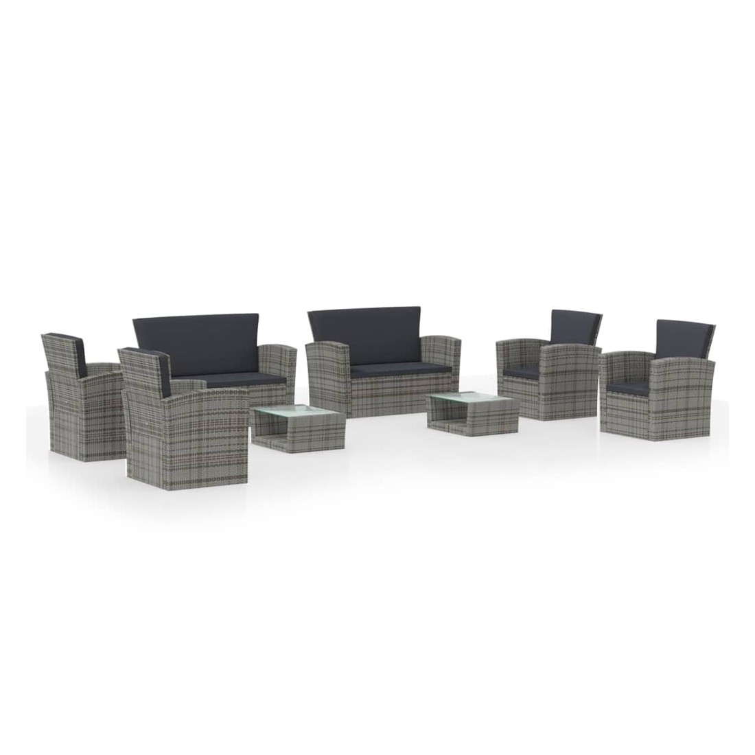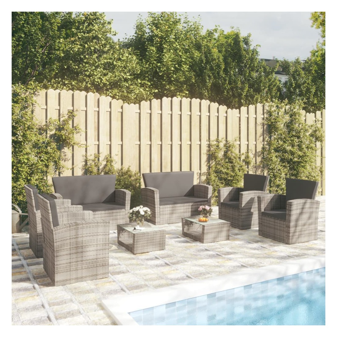 Créez un coin salon relaxant avec cet ensemble de salon de jardin en résine tressée. Avec un design élégant, il deviendra le point central de votre jardin ou terrasse ! L'ensemble de salon confortable a un cadre en acier enduit de poudre recouvert de résine tressée, ce qui le rend résistant et robuste. Grâce à leur construction légère, tous les articles sont faciles à déplacer. Le dessus de table en verre est également facile à nettoyer avec un chiffon humide. Les coussins bien rembourrés ajoutent un confort supplémentaire à votre temps de détente. De plus, les housses de coussin sont amovibles et lavables avec des fermetures éclair. Remarque : afin de prolonger la durée de vie des meubles d'extérieur, nous vous recommandons de les protéger avec une housse imperméable.