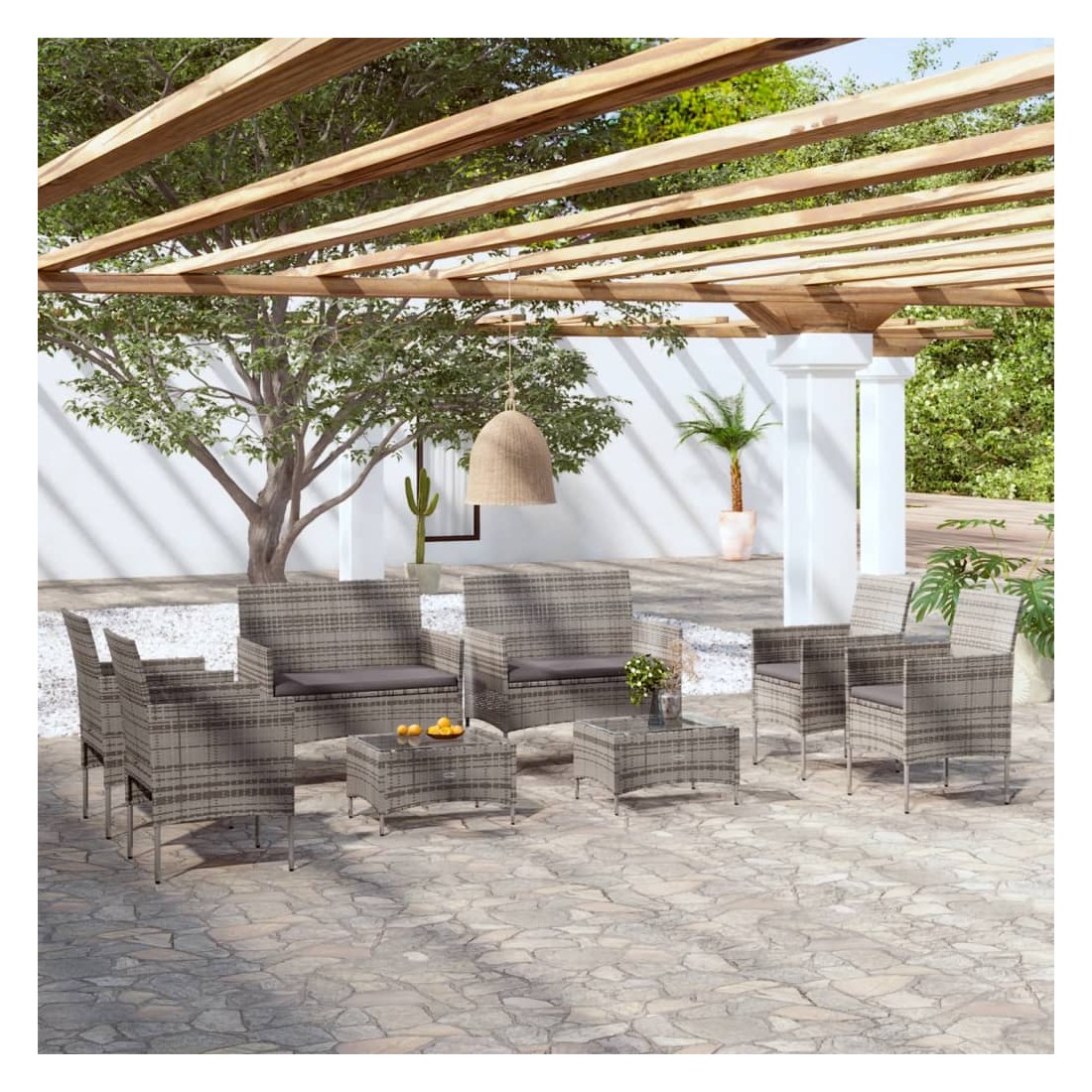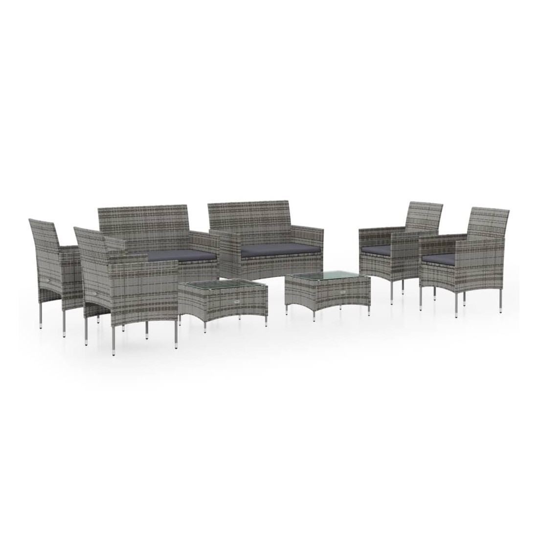Créez un coin salon relaxant avec cet ensemble de salon de jardin en résine tressée. Avec un design élégant, il deviendra le point central de votre jardin ou terrasse ! L'ensemble de salon confortable a un cadre en acier enduit de poudre recouvert de résine tressée, ce qui le rend résistant et robuste. Grâce à leur construction légère, tous les articles sont faciles à déplacer. Le dessus de table en verre est également facile à nettoyer avec un chiffon humide. Les coussins bien rembourrés ajoutent un confort supplémentaire à votre temps de détente. De plus, les housses de coussin sont amovibles et lavables avec des fermetures éclair. Remarque : afin de prolonger la durée de vie des meubles d'extérieur, nous vous recommandons de les protéger avec une housse imperméable.