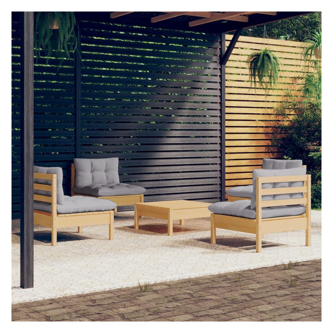 Ce salon de jardin est un excellent choix pour vous détendre et profiter du beau temps, faire une sieste ou discuter avec votre famille ou vos amis. Le salon de patio est fabriqué en bois de pin massif, ce qui le rend robuste et stable. Les coussins ajoutent un confort supplémentaire. Vous pouvez le combiner avec d’autres segments modulaires pour créer vos propres configurations de salon de jardin ! Remarque : afin de prolonger la durée de vie des meubles d'extérieur, nous vous recommandons de les protéger avec une housse imperméable.