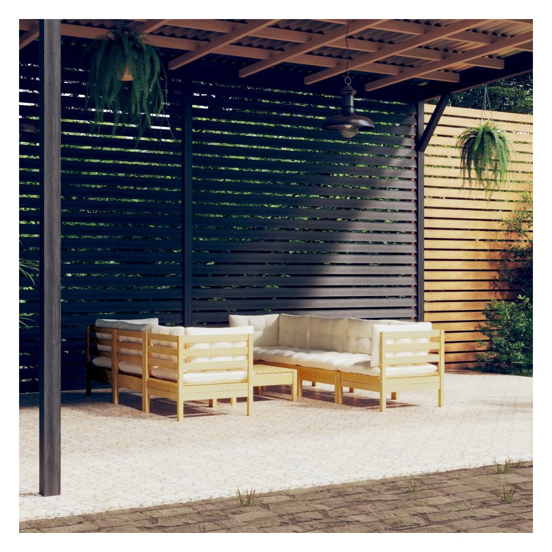 Salon de jardin 8 pcs avec coussins crème Bois de pin massif