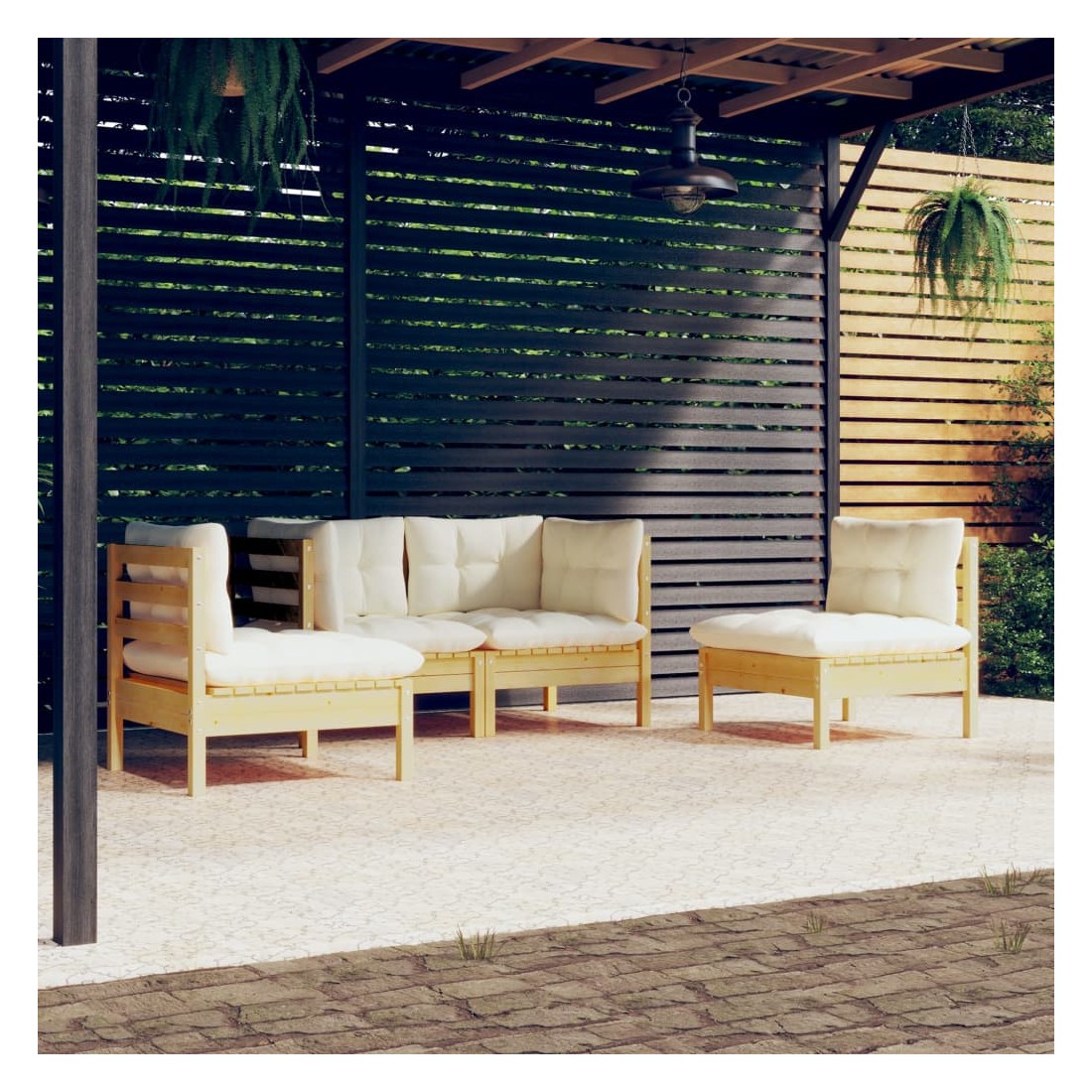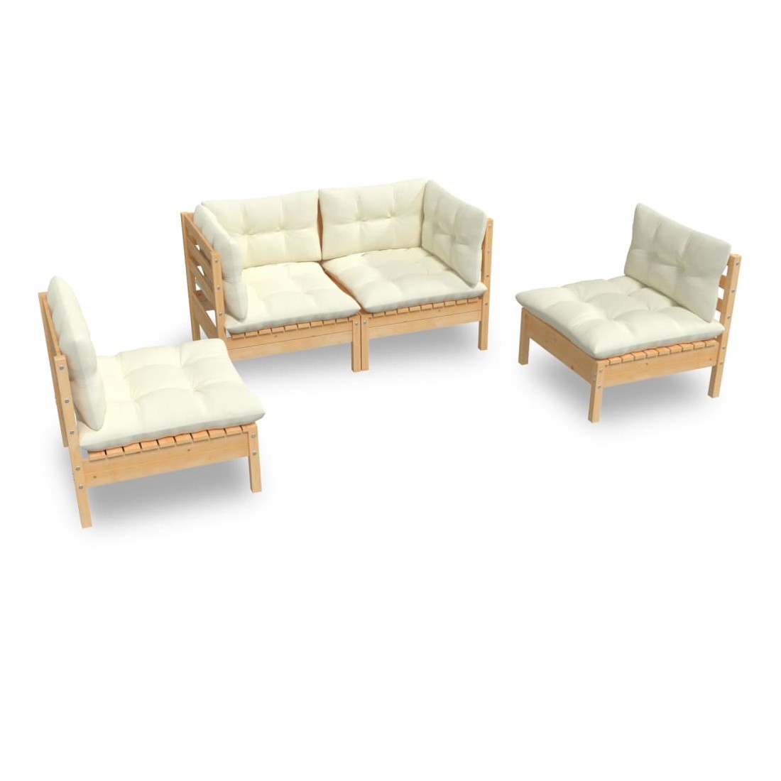 Salon de jardin 4 pcs avec coussins crème Bois de pin massif