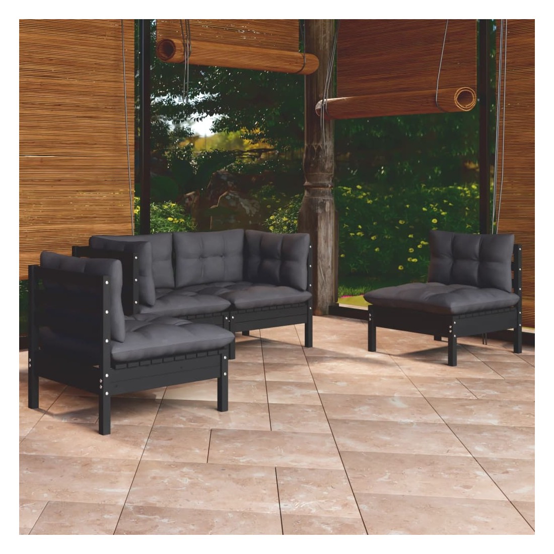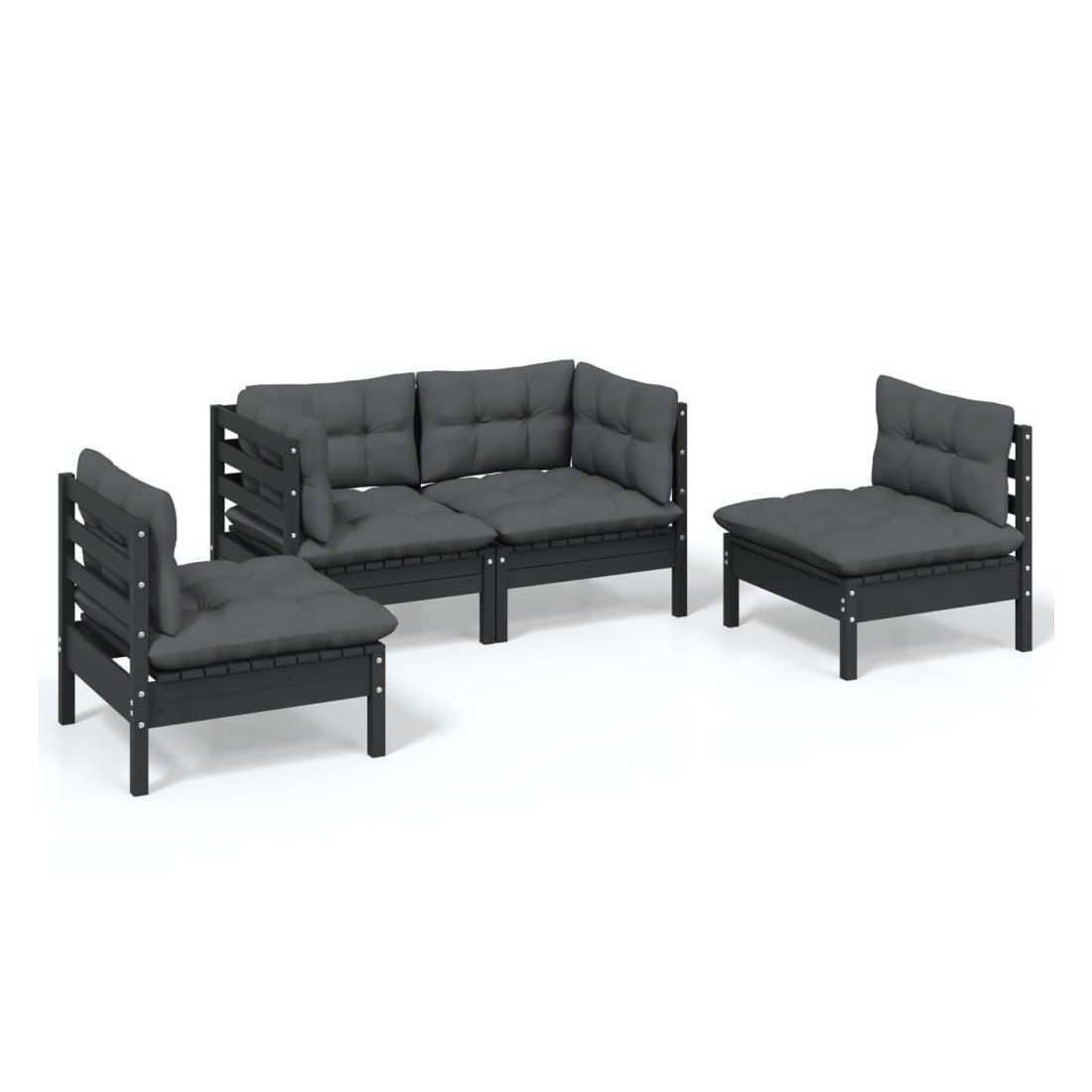 Salon de jardin 4 pcs avec coussins bois de pin massif