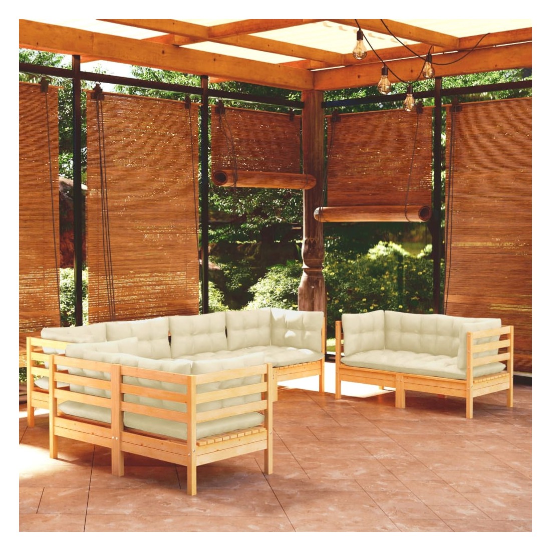 Salon de jardin 8 pcs avec coussins crème Bois de pin massif