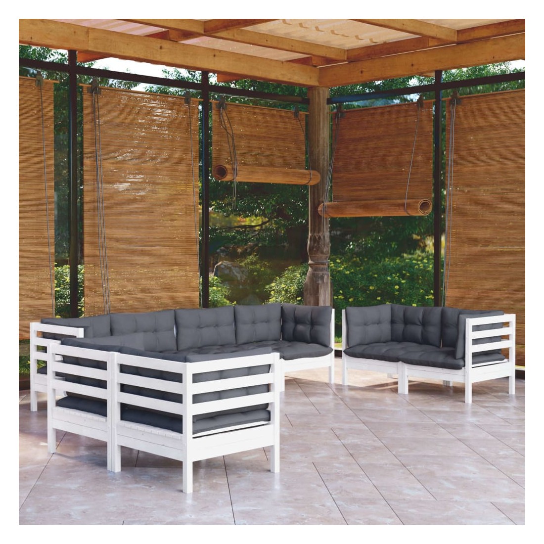 Ce salon de jardin est un excellent choix pour vous détendre et profiter du beau temps, faire une sieste ou discuter avec votre famille ou vos amis. Le salon de patio est fabriqué en bois de pin massif, ce qui le rend robuste et stable. Les coussins ajoutent un confort supplémentaire. Vous pouvez le combiner avec d’autres segments modulaires pour créer vos propres configurations de salon de jardin ! Remarque : afin de prolonger la durée de vie des meubles d'extérieur, nous vous recommandons de les protéger avec une housse imperméable.