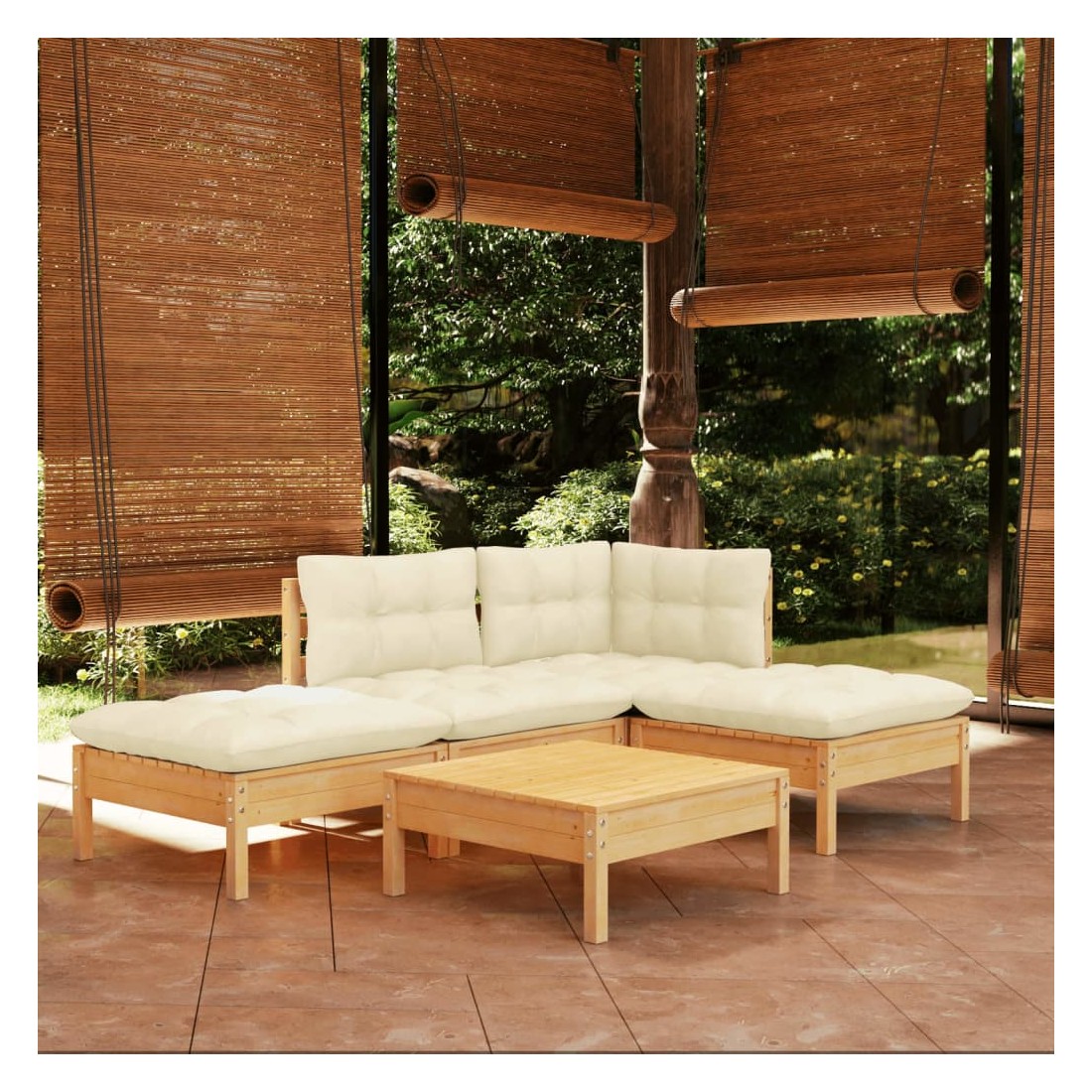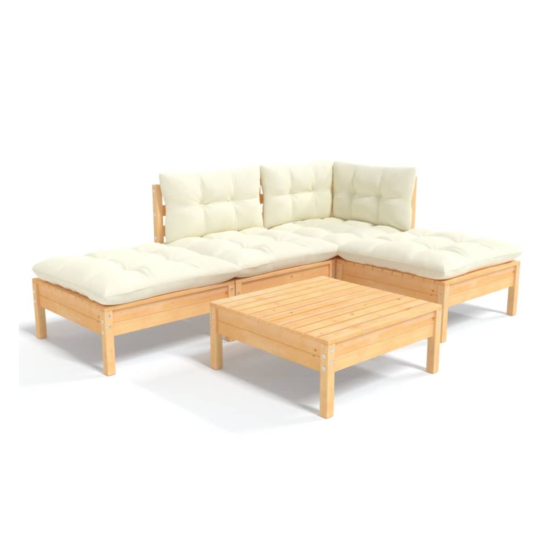 Salon de jardin 5 pcs avec coussins crème bois de pin