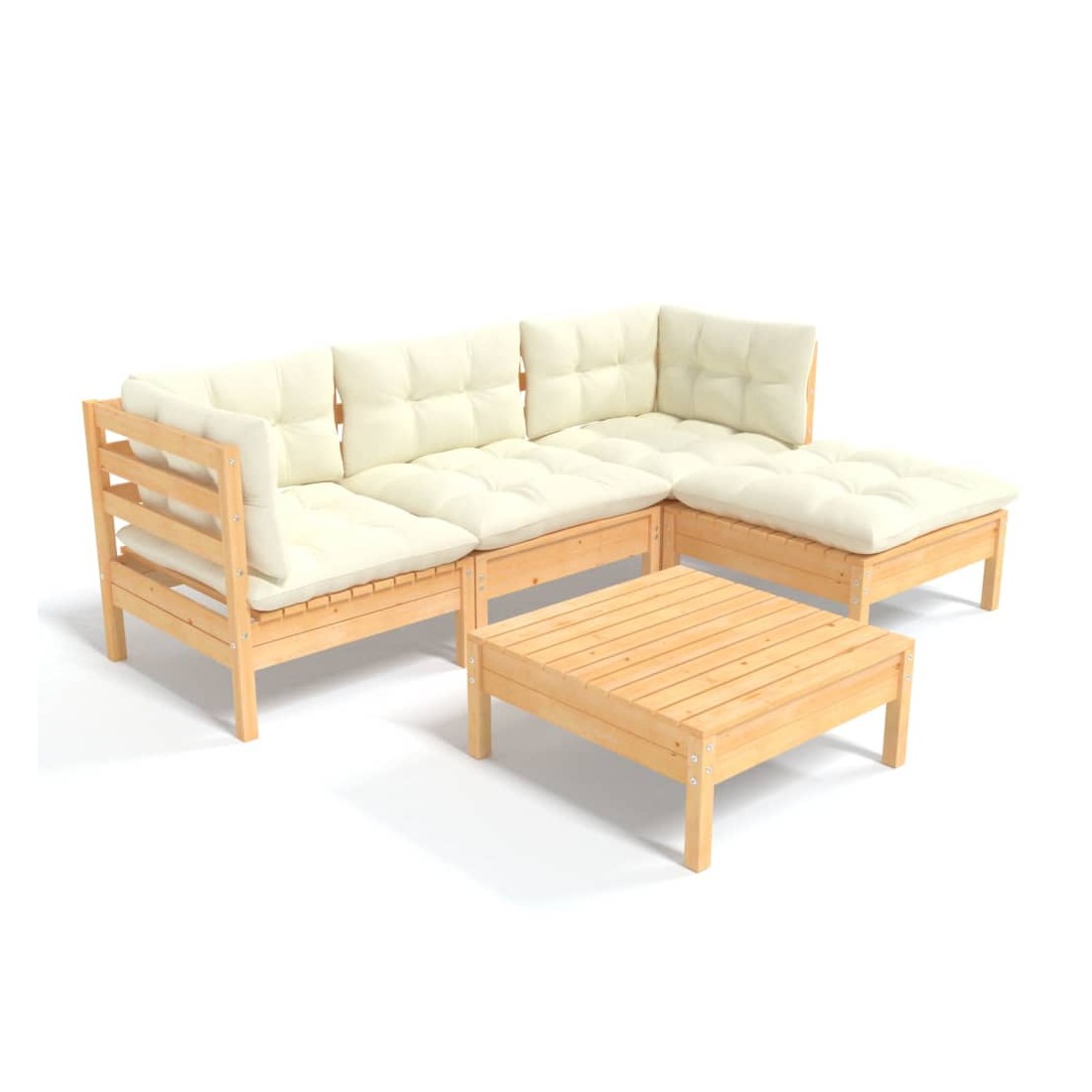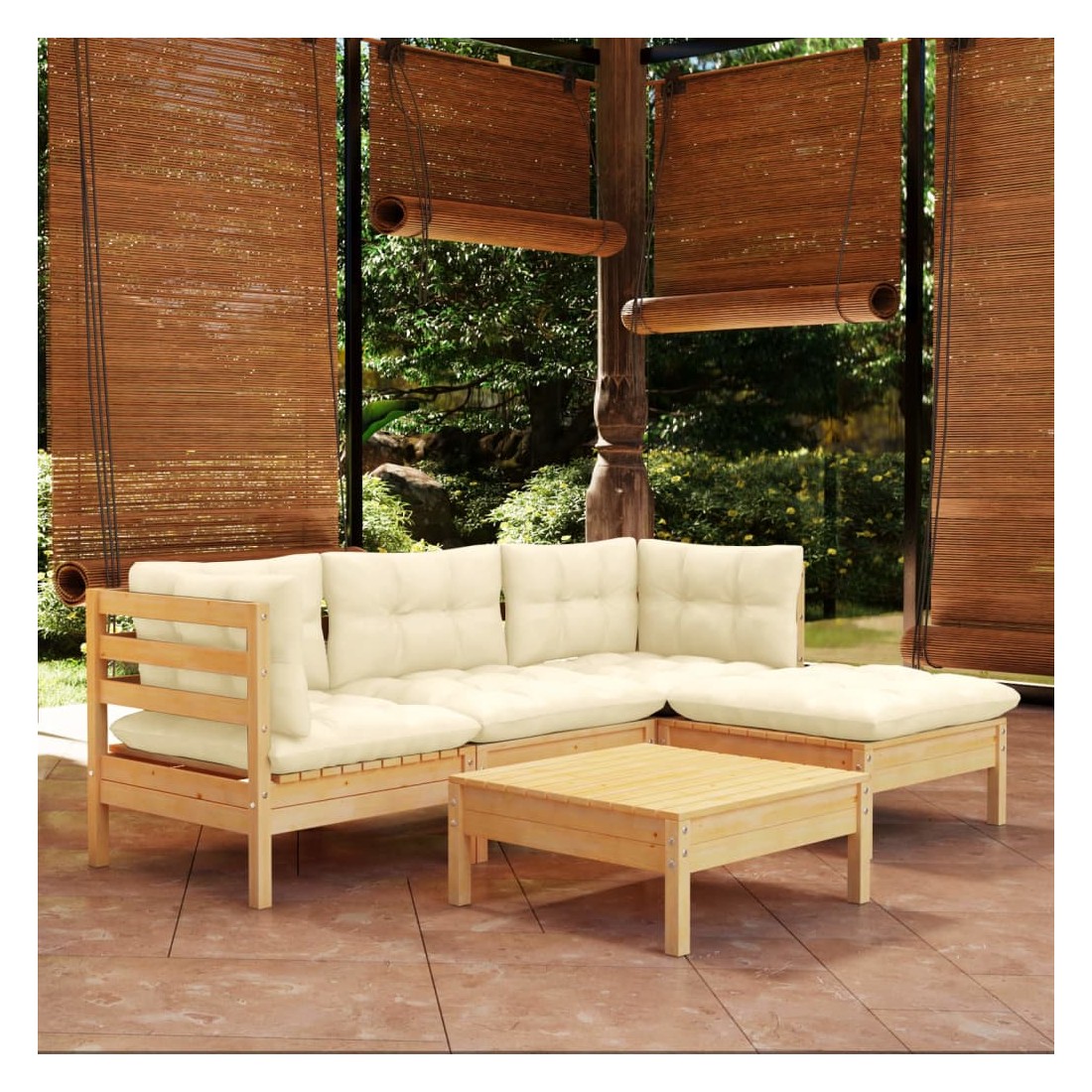 Salon de jardin 5 pcs avec coussins crème bois de pin