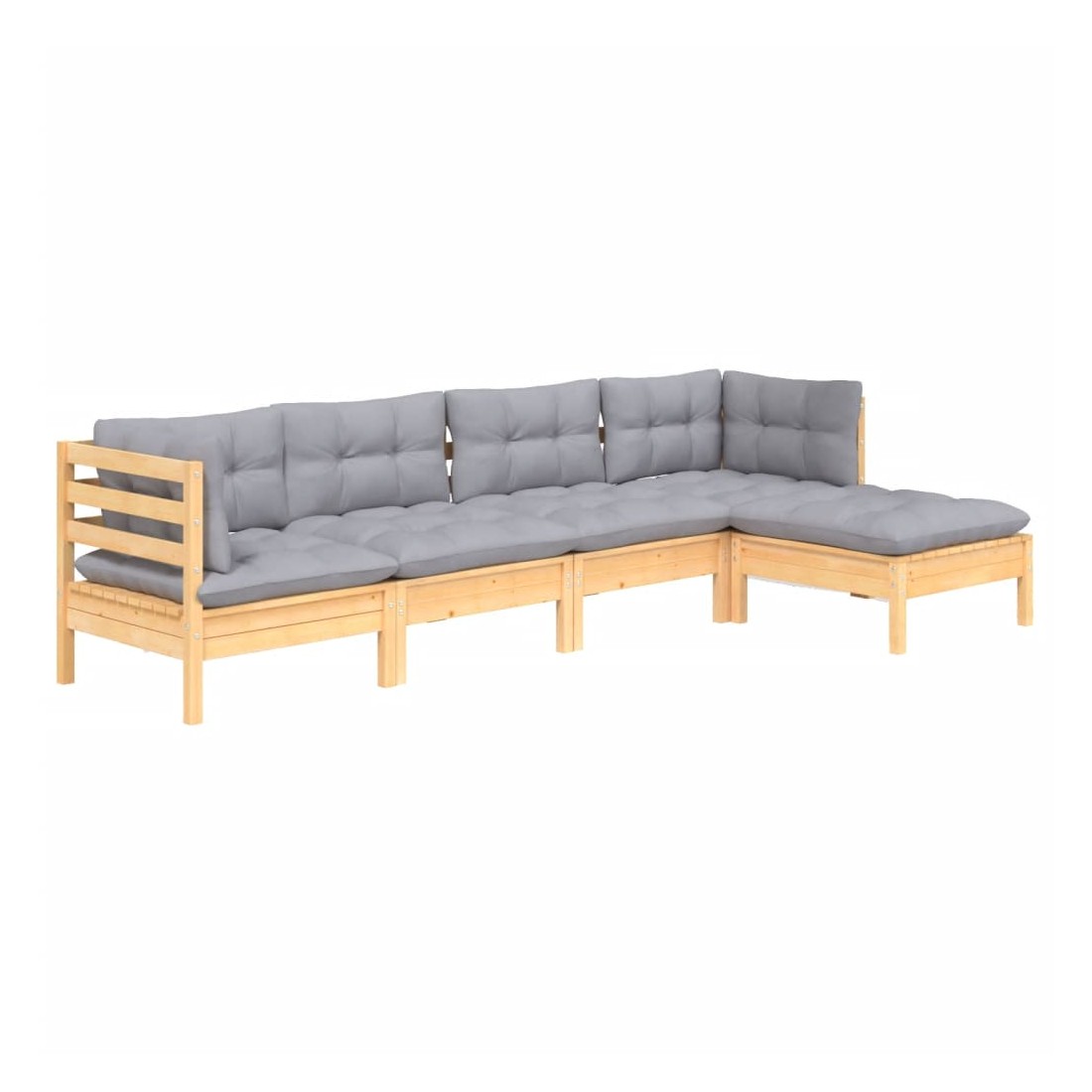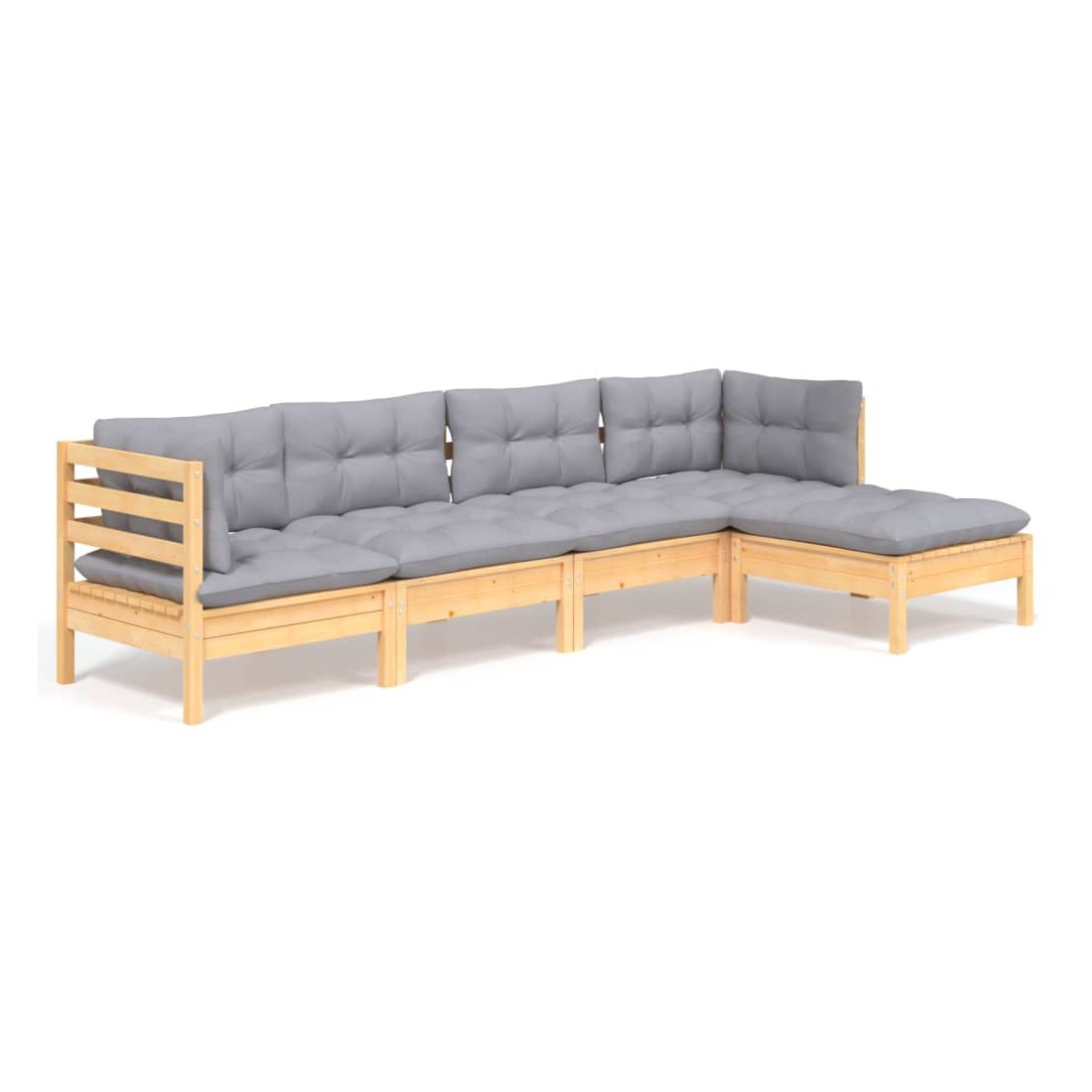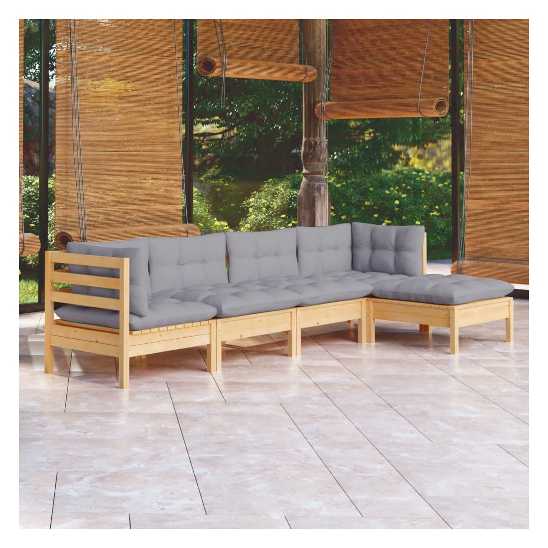 Salon de jardin 5 pcs avec coussins gris bois de pin