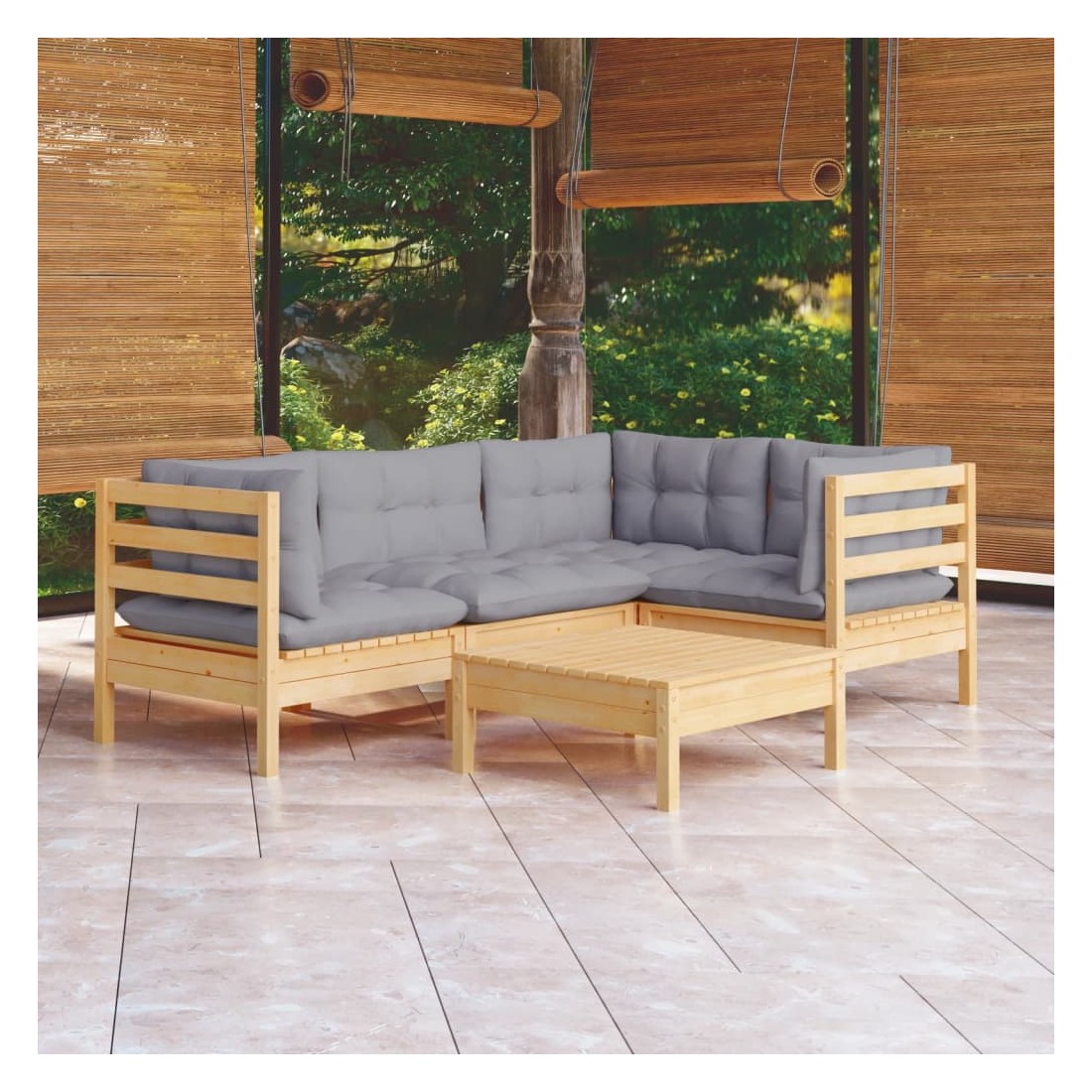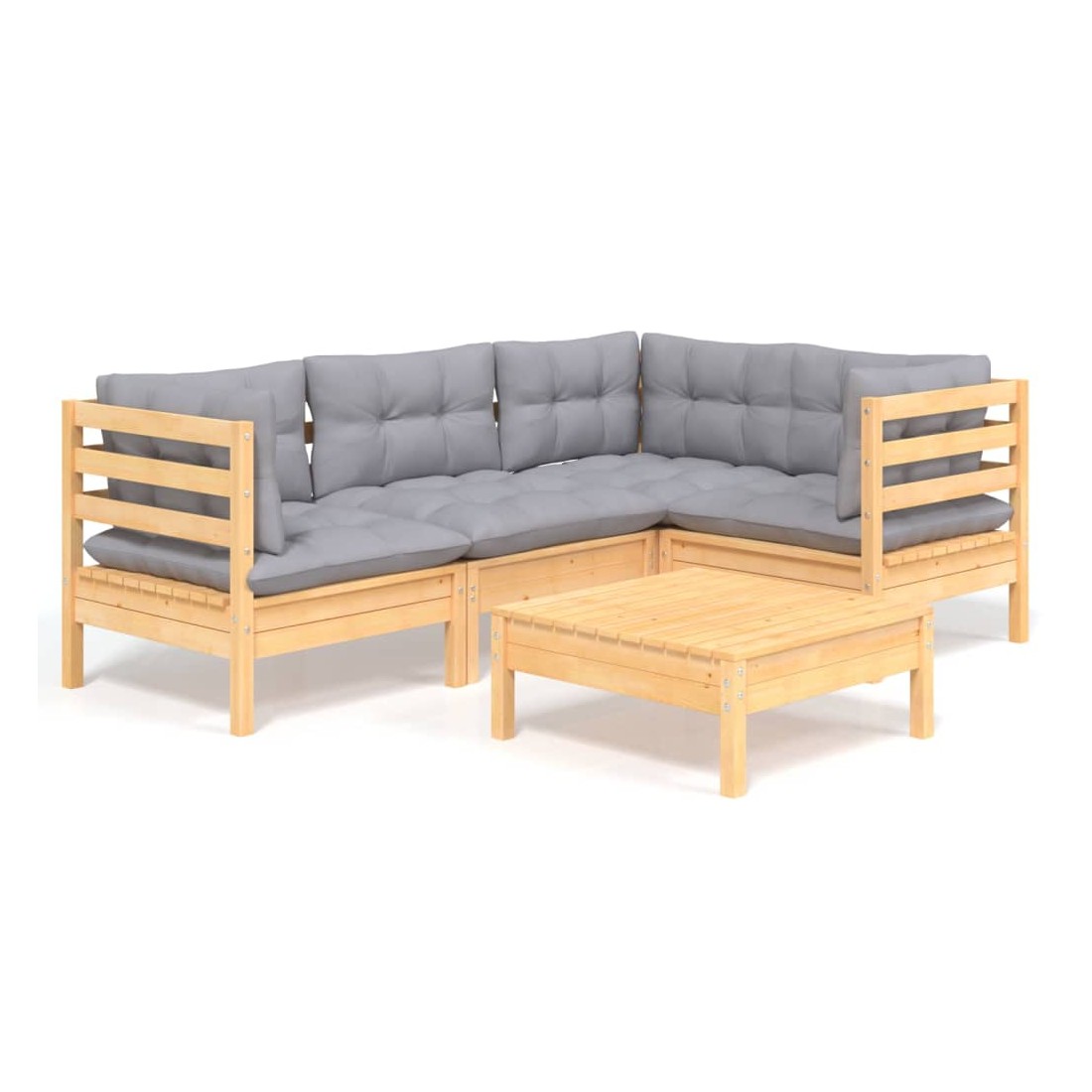 Salon de jardin 5 pcs avec coussins gris bois de pin
