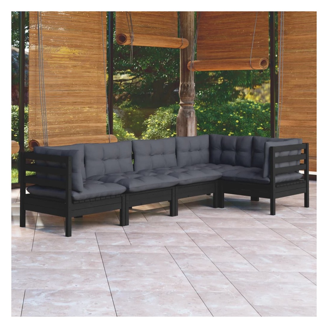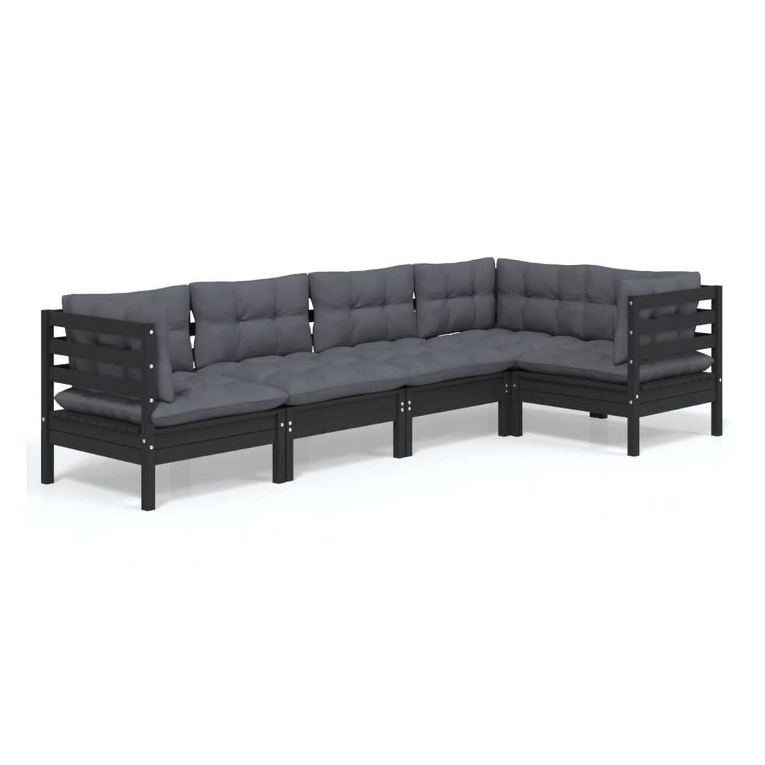 Salon de jardin 5 pcs avec coussins Noir Bois de pin