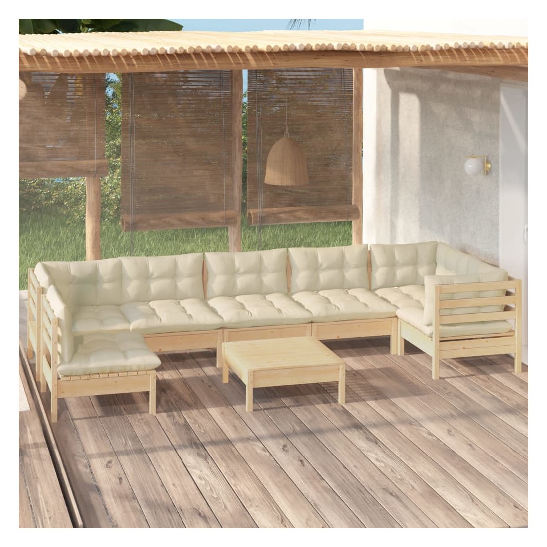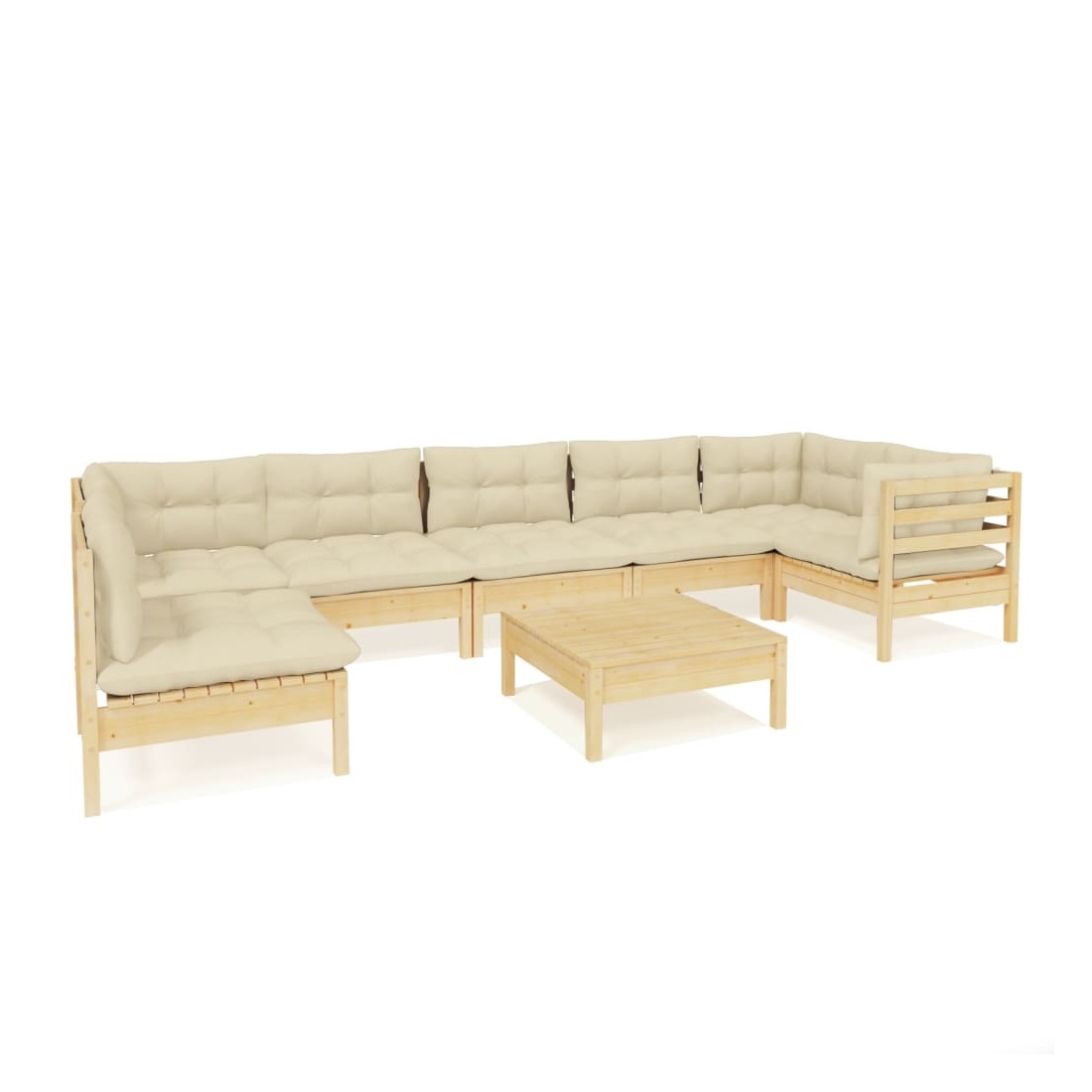 Salon de jardin 8 pcs avec coussins crème Bois de pin