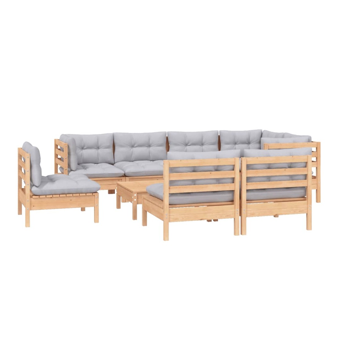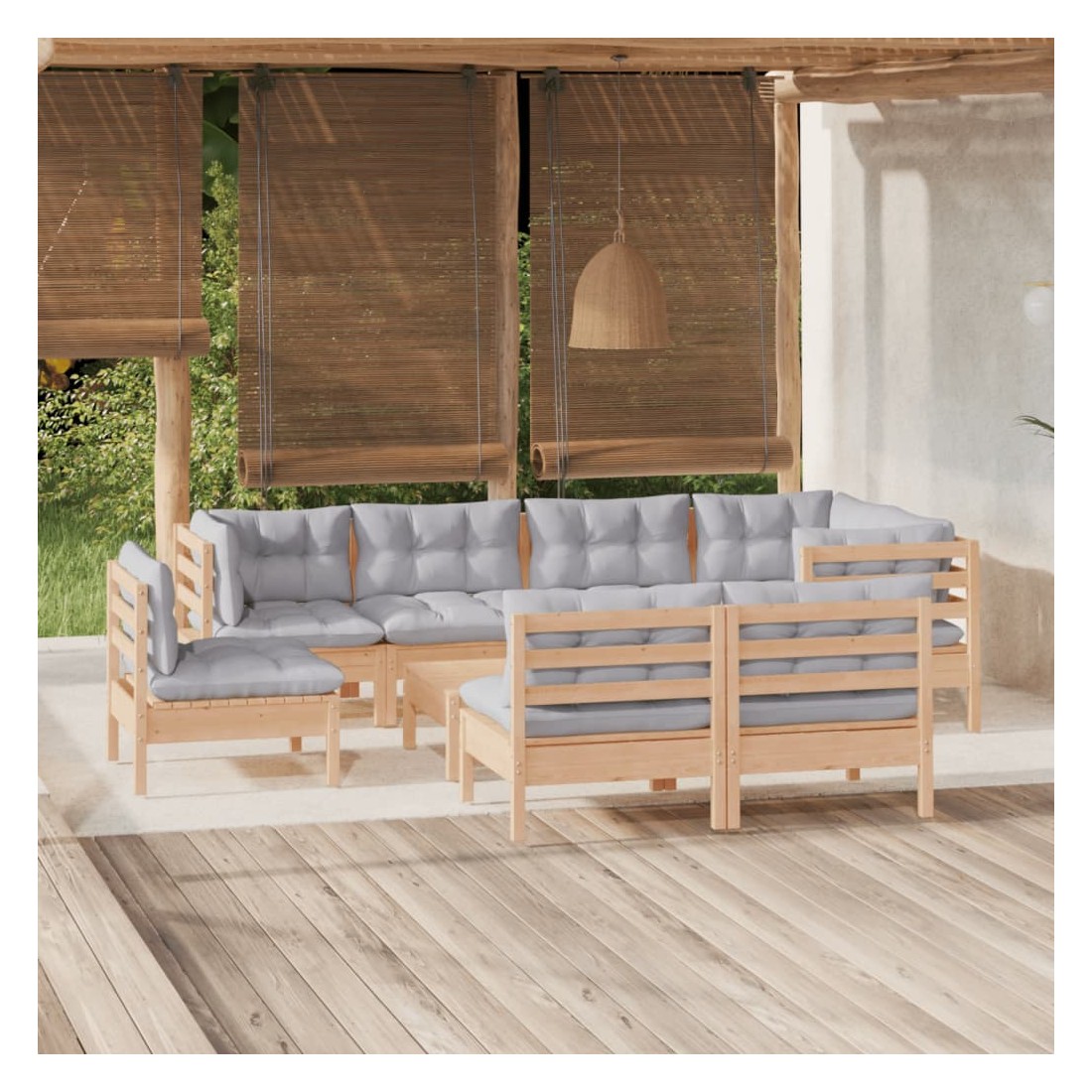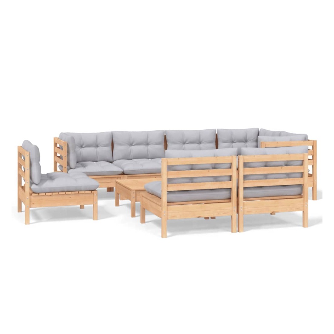 Salon de jardin 9 pcs avec coussins gris bois de pin massif