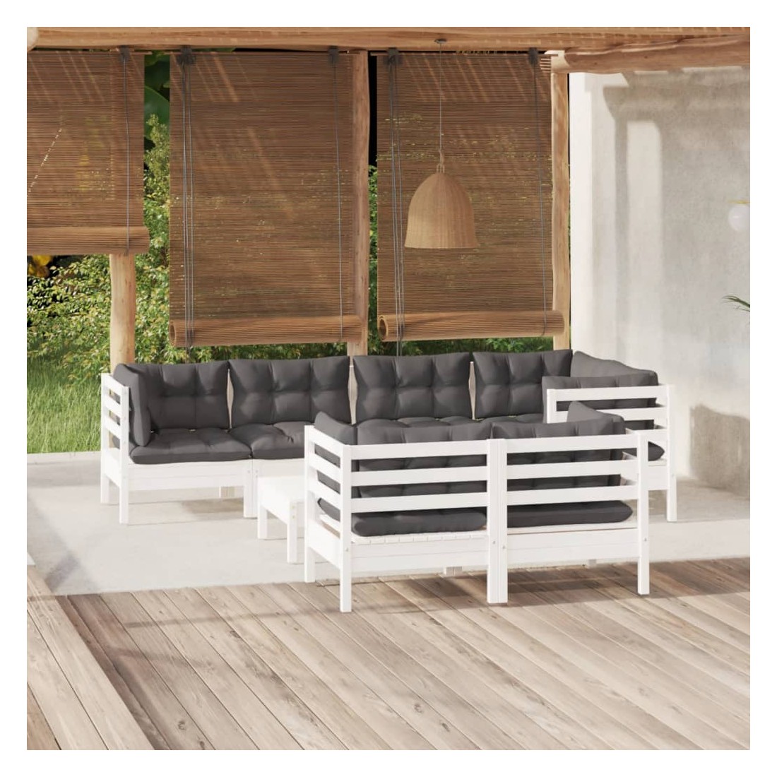 Ce salon de jardin est un excellent choix pour vous détendre et profiter du beau temps, faire une sieste ou discuter avec votre famille ou vos amis. Le salon de patio est fabriqué en bois de pin massif, ce qui le rend robuste et stable. Les coussins ajoutent un confort supplémentaire. Vous pouvez le combiner avec d’autres segments modulaires pour créer vos propres configurations de salon de jardin ! Remarque : afin de prolonger la durée de vie des meubles d'extérieur, nous vous recommandons de les protéger avec une housse imperméable.