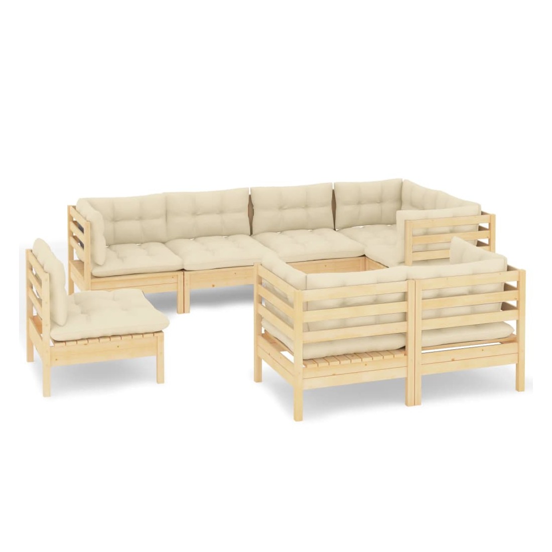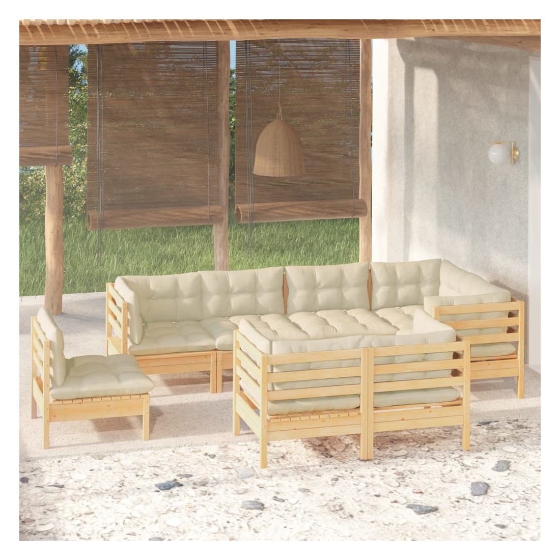Salon de jardin 8 pcs avec coussins crème Bois de pin massif