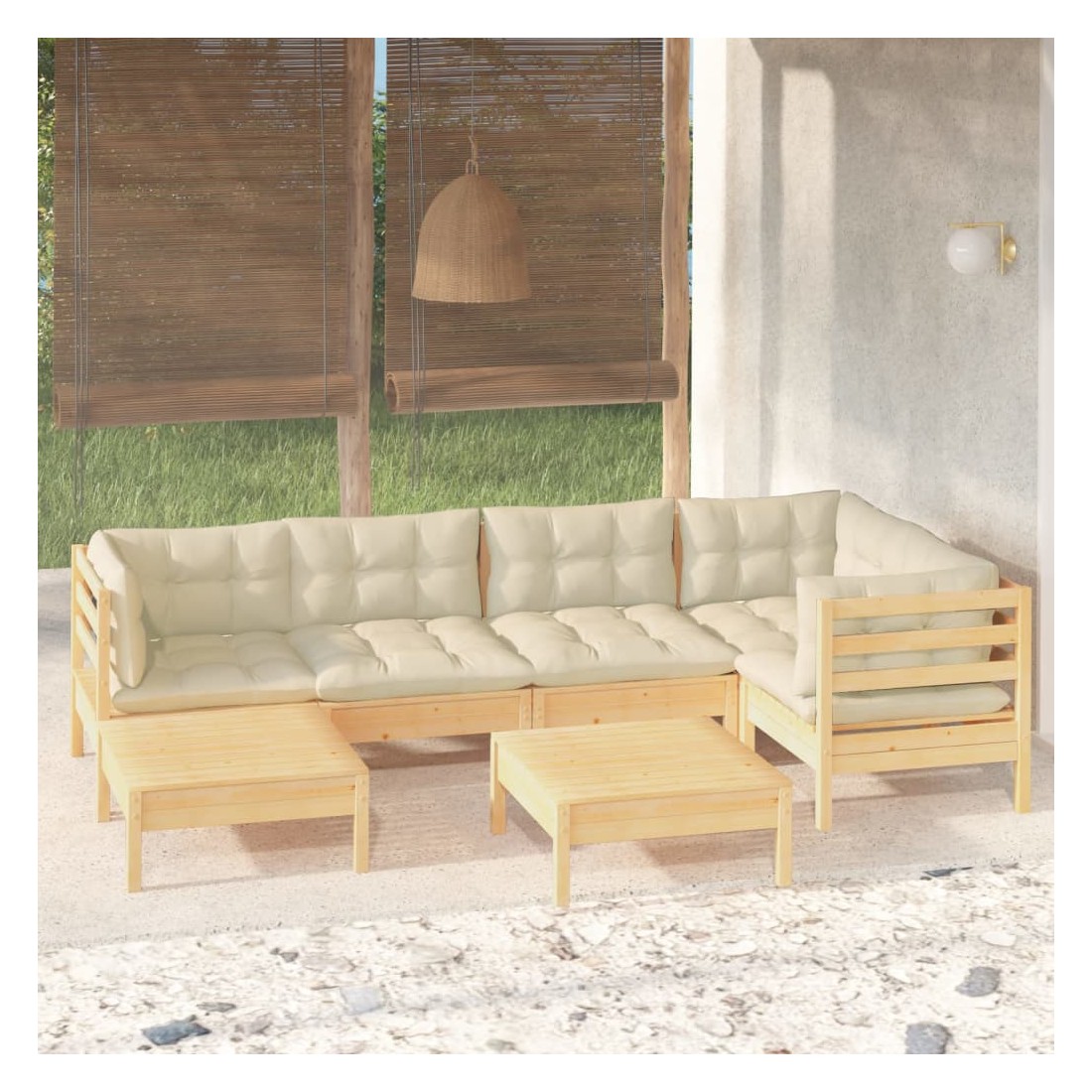 Ce salon de jardin est un excellent choix pour vous détendre et profiter du beau temps, faire une sieste ou discuter avec votre famille ou vos amis. Le salon de patio est fabriqué en bois de pin massif, ce qui le rend robuste et stable. Les coussins ajoutent un confort supplémentaire. Vous pouvez le combiner avec d’autres segments modulaires pour créer vos propres configurations de salon de jardin ! Remarque : afin de prolonger la durée de vie des meubles d'extérieur, nous vous recommandons de les protéger avec une housse imperméable.