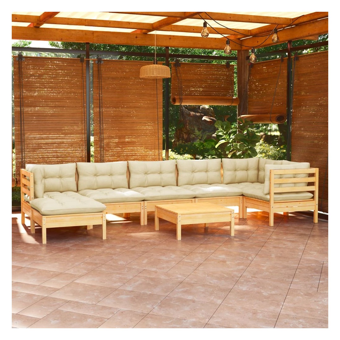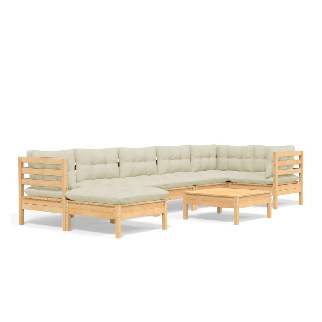 Ce salon de jardin est un excellent choix pour vous détendre et profiter du beau temps, faire une sieste ou discuter avec votre famille ou vos amis. Le salon de patio est fabriqué en bois de pin massif, ce qui le rend robuste et stable. Les coussins ajoutent un confort supplémentaire. Vous pouvez le combiner avec d’autres segments modulaires pour créer vos propres configurations de salon de jardin ! Remarque : afin de prolonger la durée de vie des meubles d'extérieur, nous vous recommandons de les protéger avec une housse imperméable.