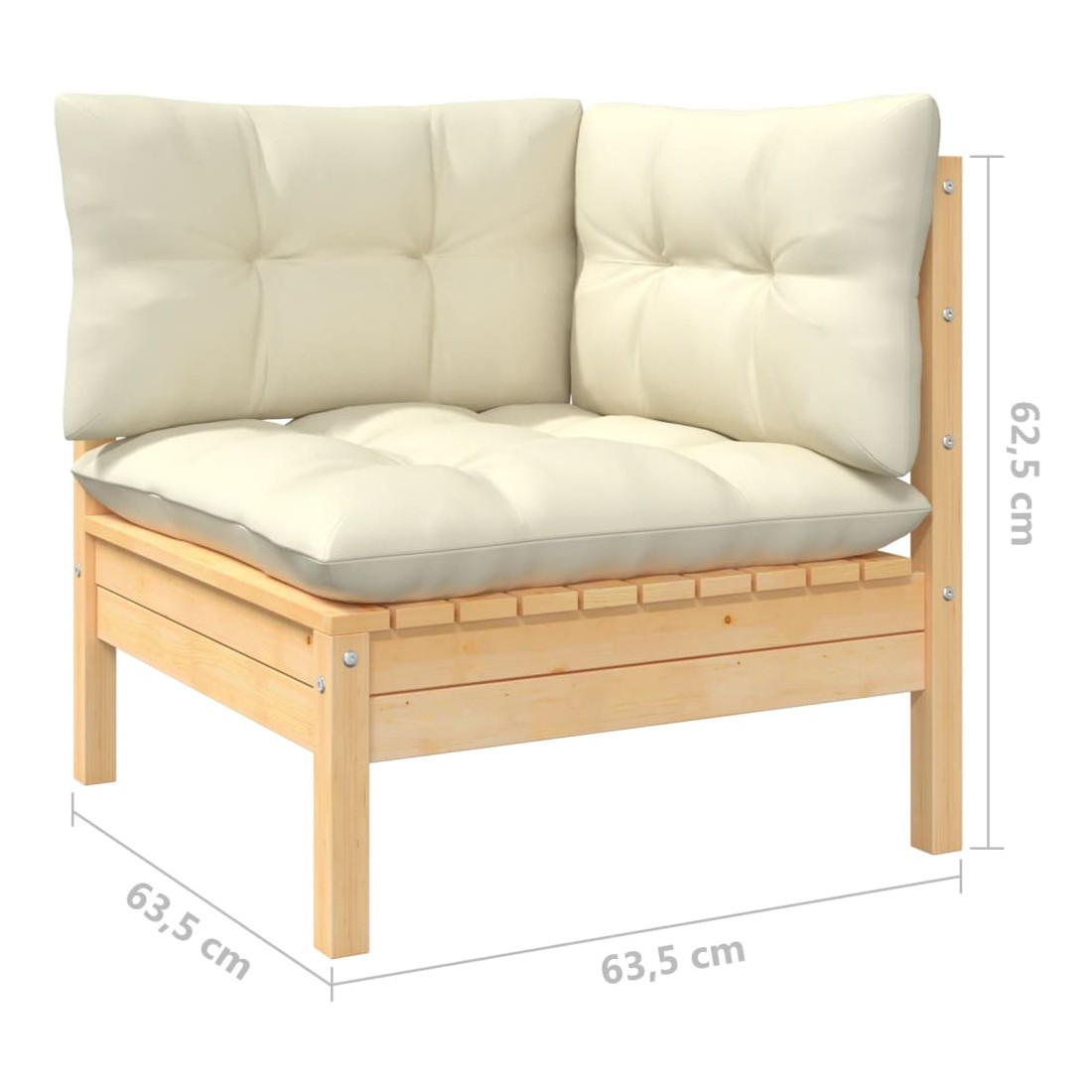- Dimensions du canapé d'angle : 63,5 x 63,5 x 62,5 cm (l x P x H)