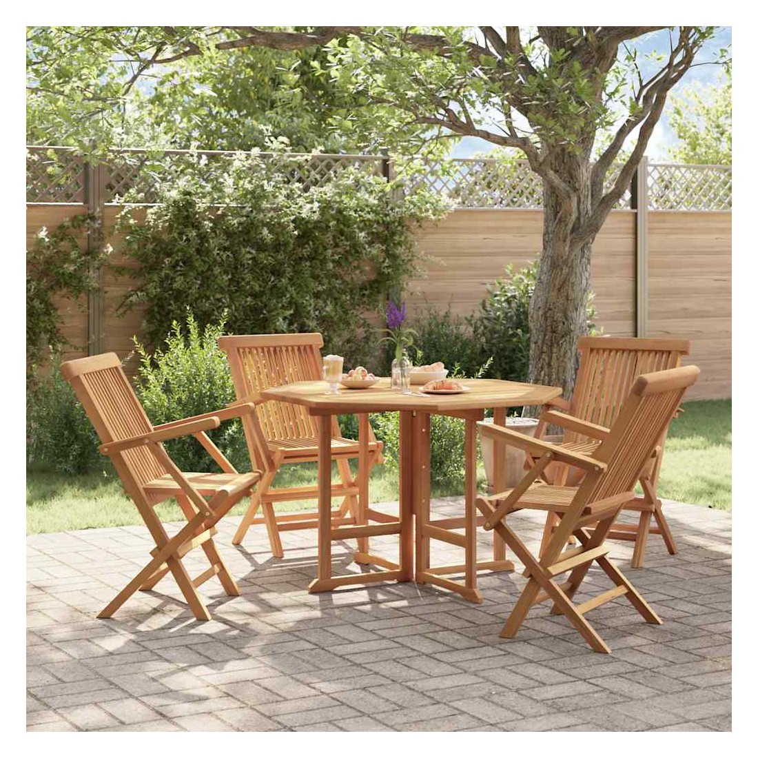 Ensemble à manger d'extérieur pliable 5 pcs Bois solide de teck