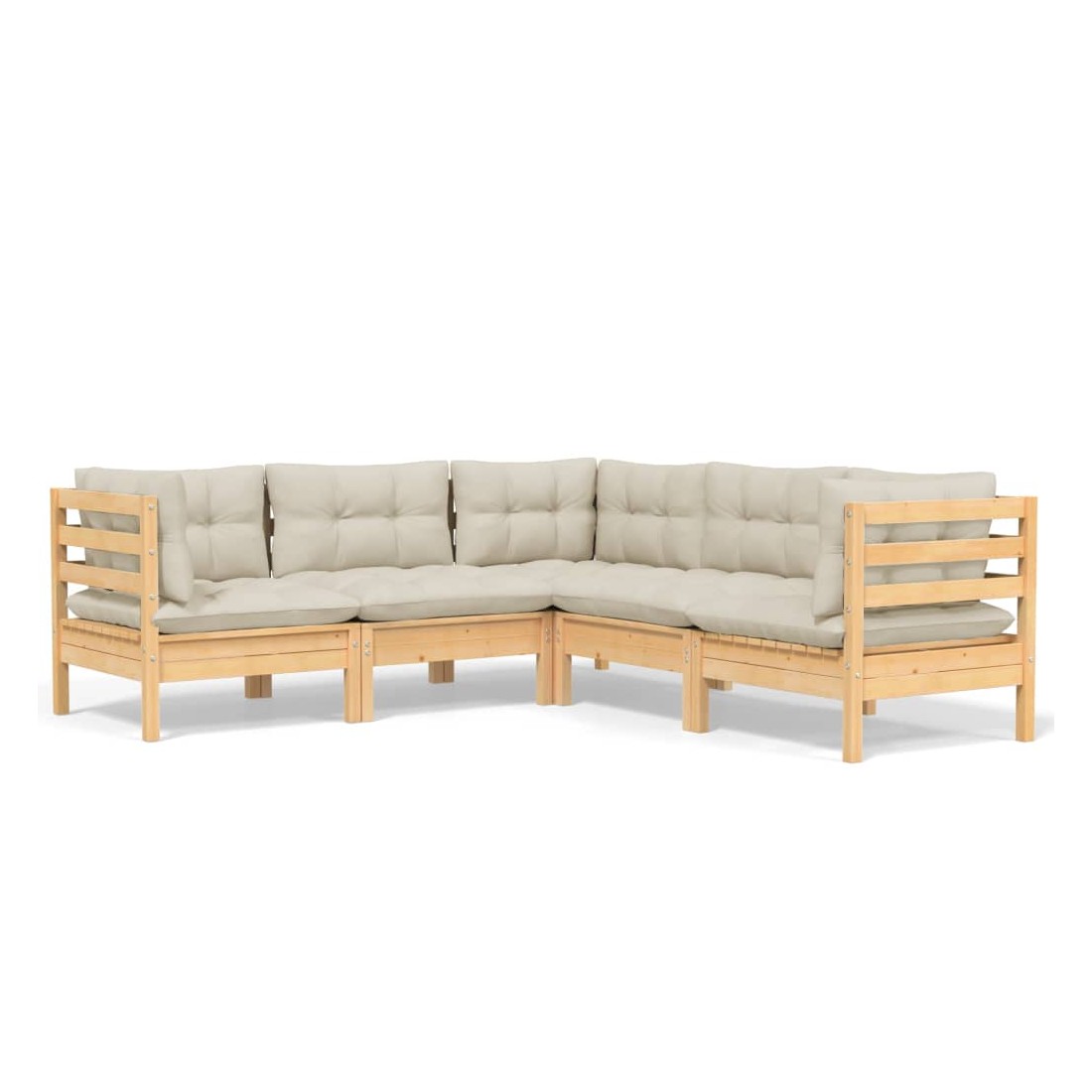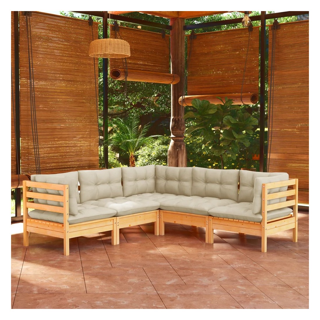 Salon de jardin 5 pcs avec coussins crème bois de pin massif