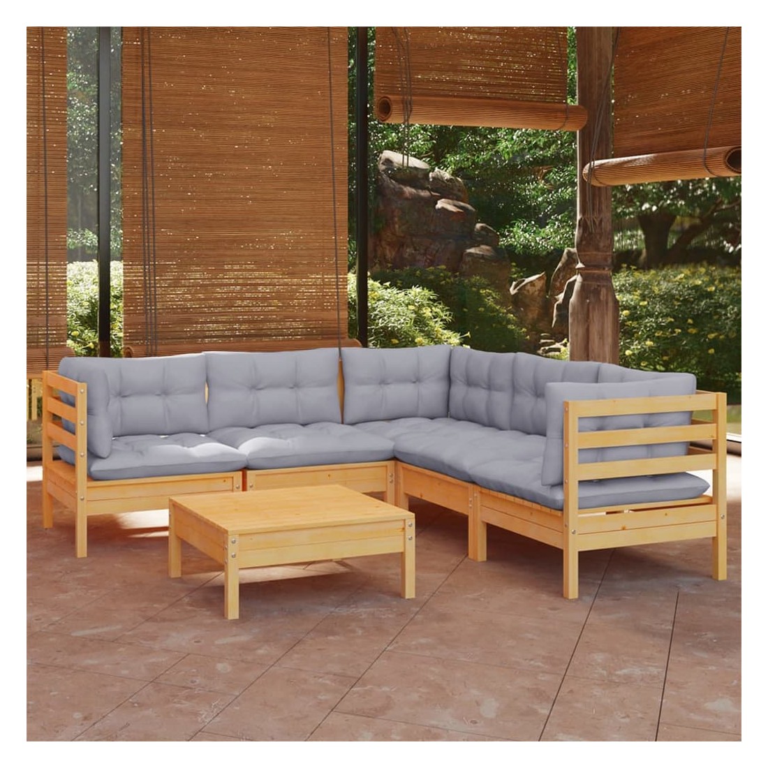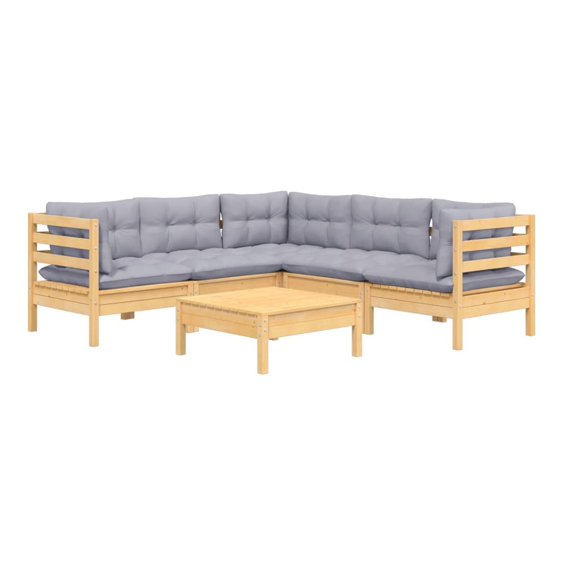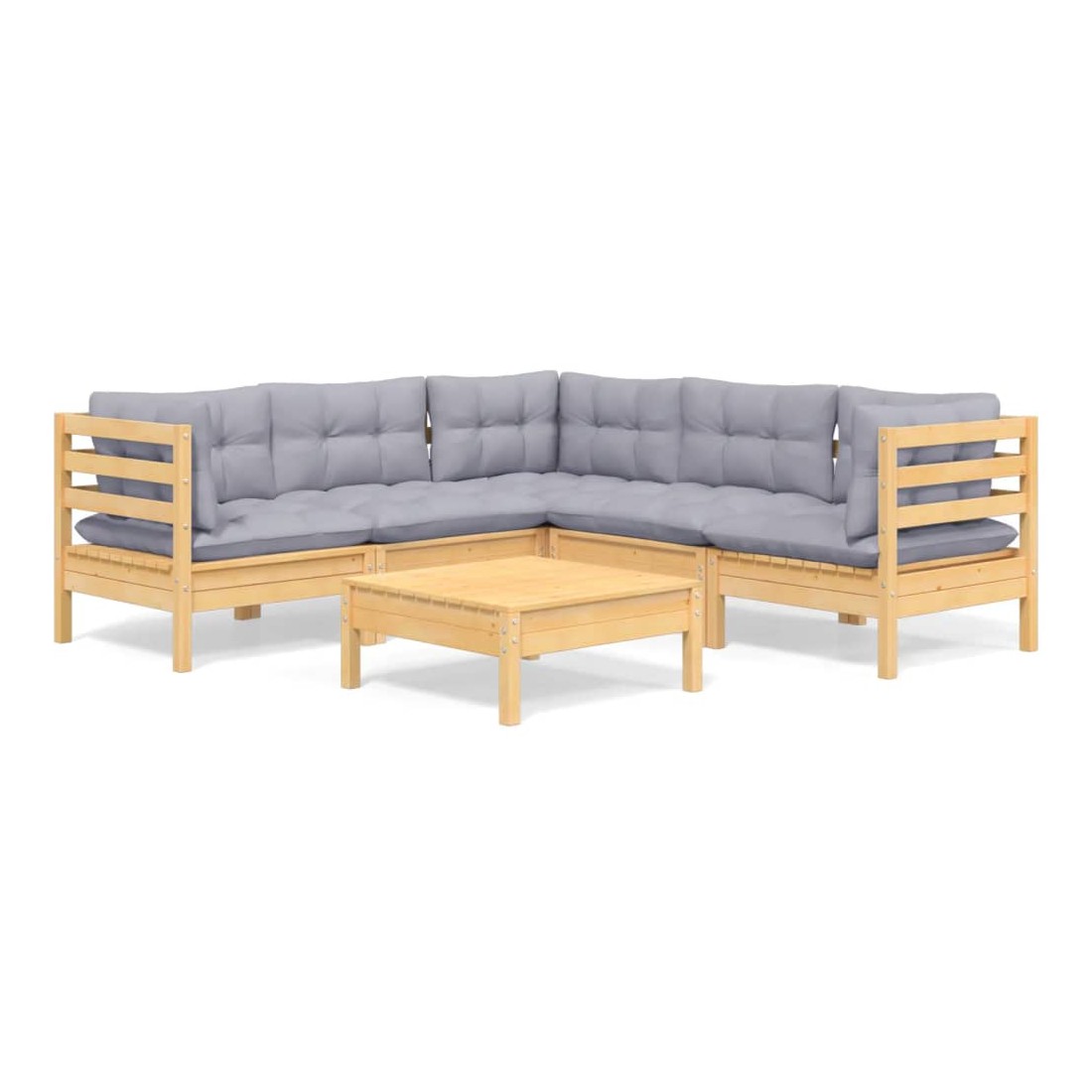 Salon de jardin 6 pcs avec coussins gris Bois de pin massif