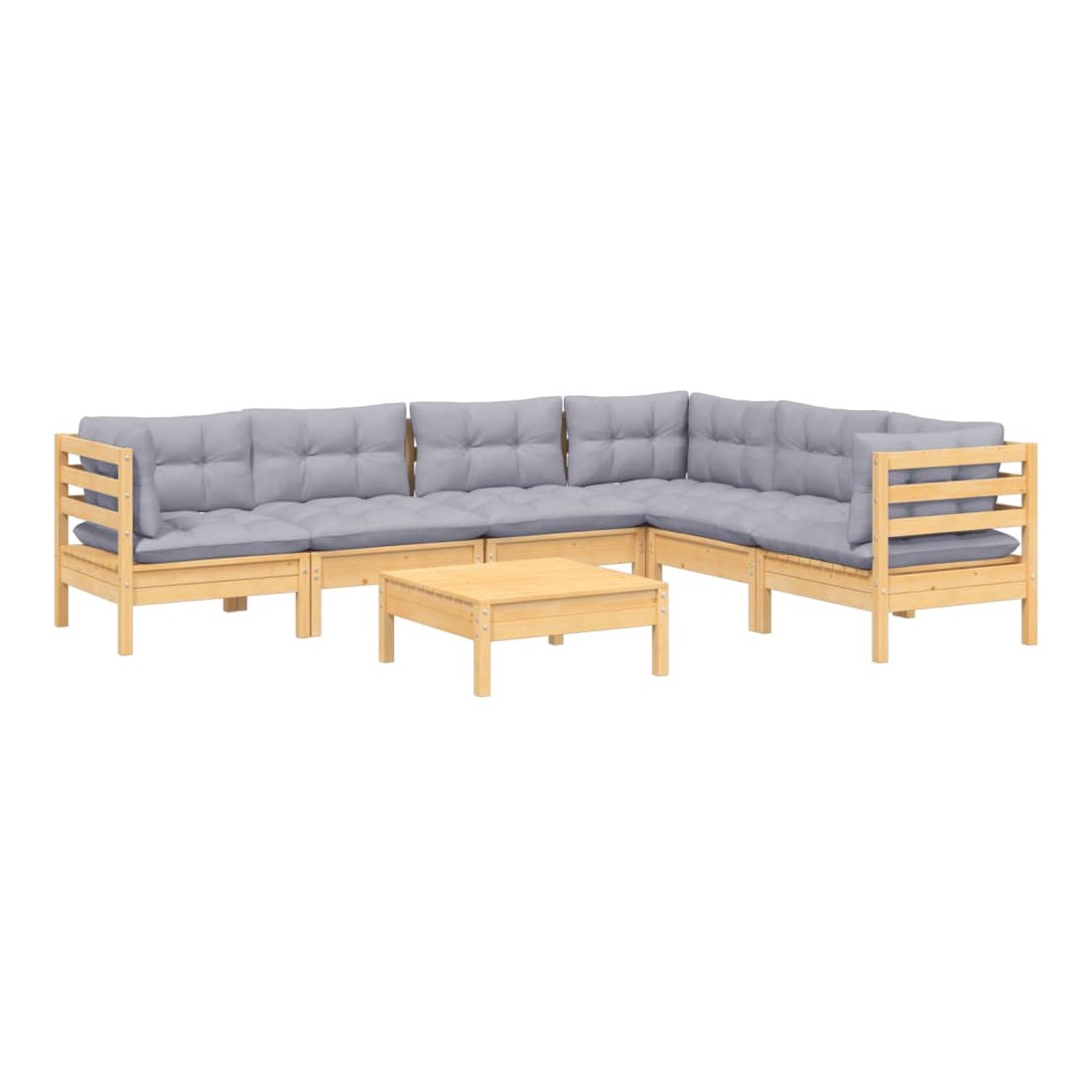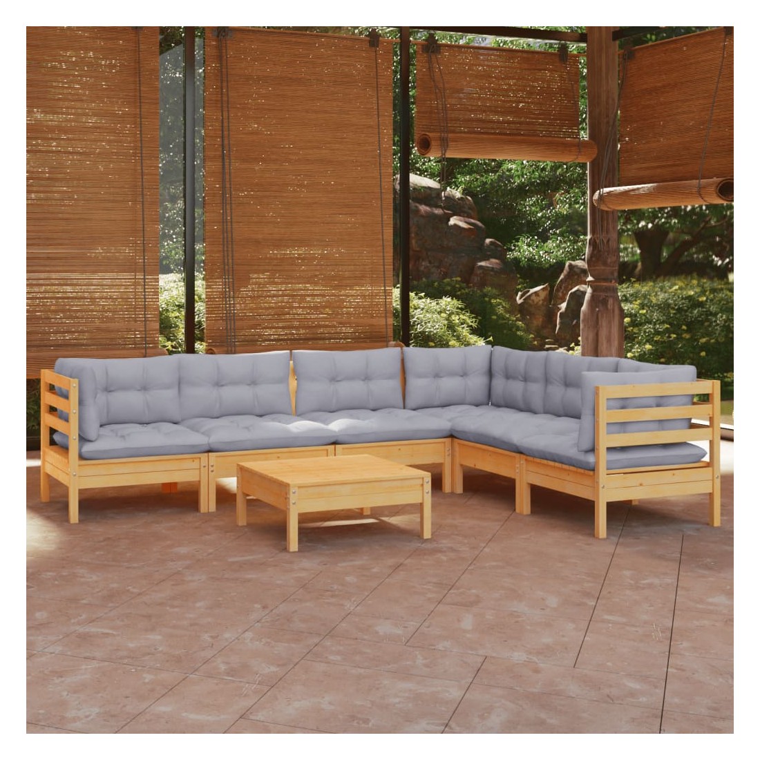 Salon de jardin 7 pcs avec coussins gris bois de pin massif