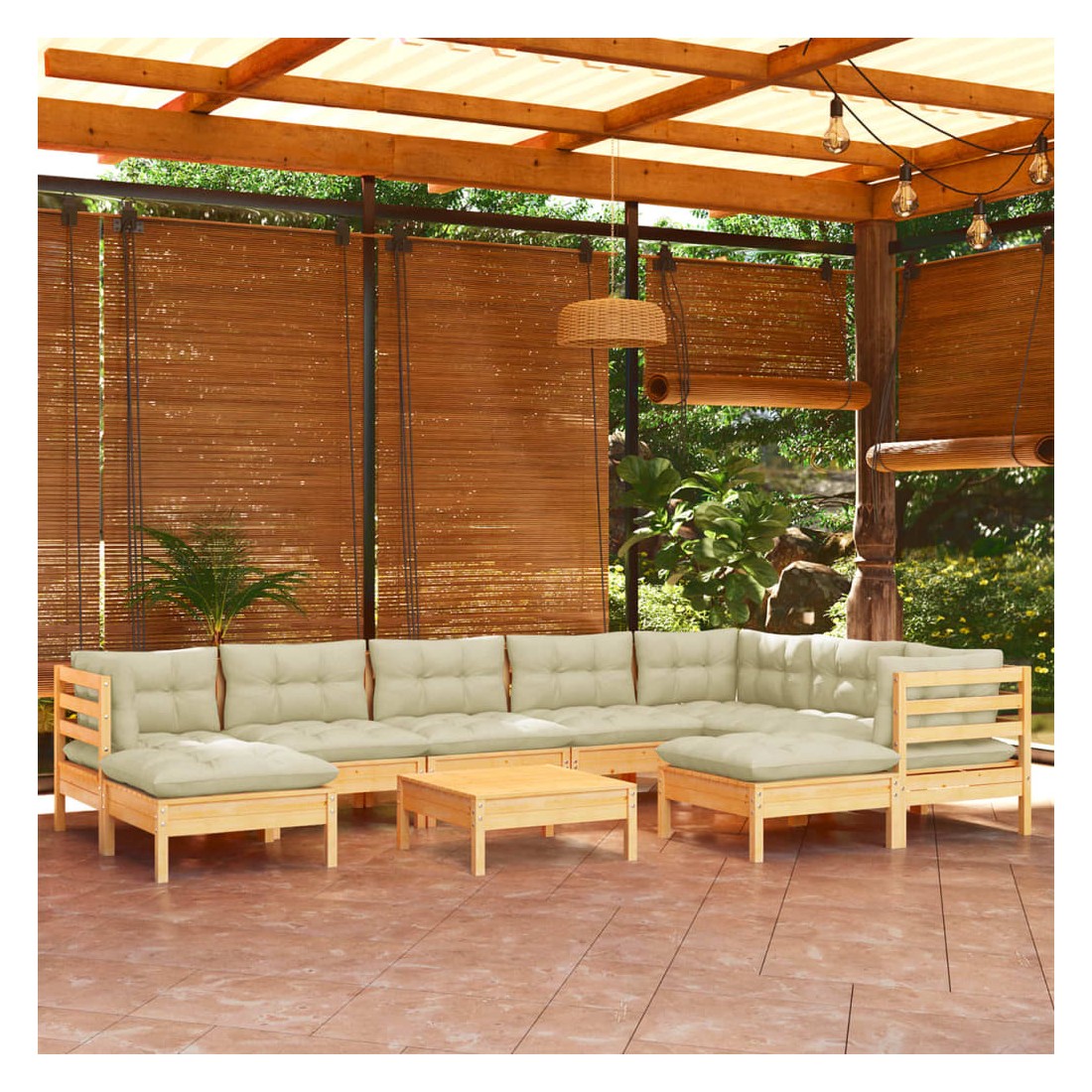 Ce salon de jardin est un excellent choix pour vous détendre et profiter du beau temps, faire une sieste ou discuter avec votre famille ou vos amis. Le salon de patio est fabriqué en bois de pin massif, ce qui le rend robuste et stable. Les coussins ajoutent un confort supplémentaire. Vous pouvez le combiner avec d’autres segments modulaires pour créer vos propres configurations de salon de jardin ! Remarque : afin de prolonger la durée de vie des meubles d'extérieur, nous vous recommandons de les protéger avec une housse imperméable.
