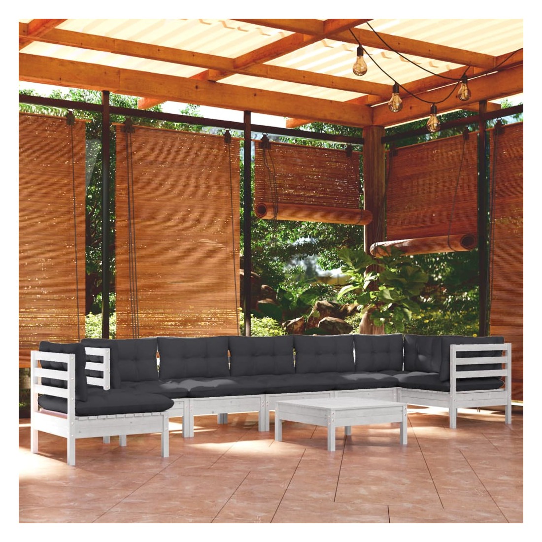 Ce salon de jardin est un excellent choix pour vous détendre et profiter du beau temps, faire une sieste ou discuter avec votre famille ou vos amis. Le salon de patio est fabriqué en bois de pin massif, ce qui le rend robuste et stable. Les coussins ajoutent un confort supplémentaire. Vous pouvez le combiner avec d’autres segments modulaires pour créer vos propres configurations de salon de jardin ! Remarque : afin de prolonger la durée de vie des meubles d'extérieur, nous vous recommandons de les protéger avec une housse imperméable.