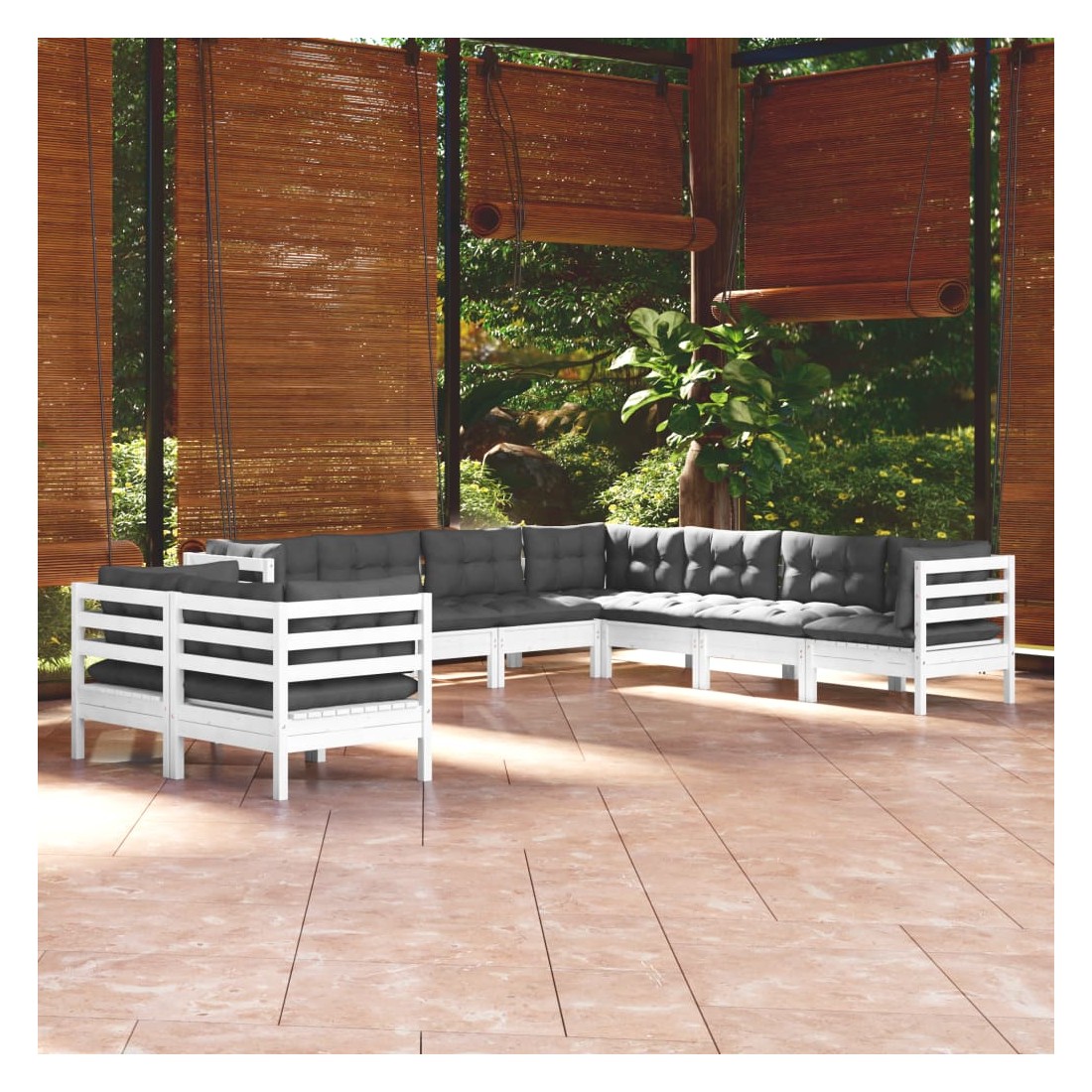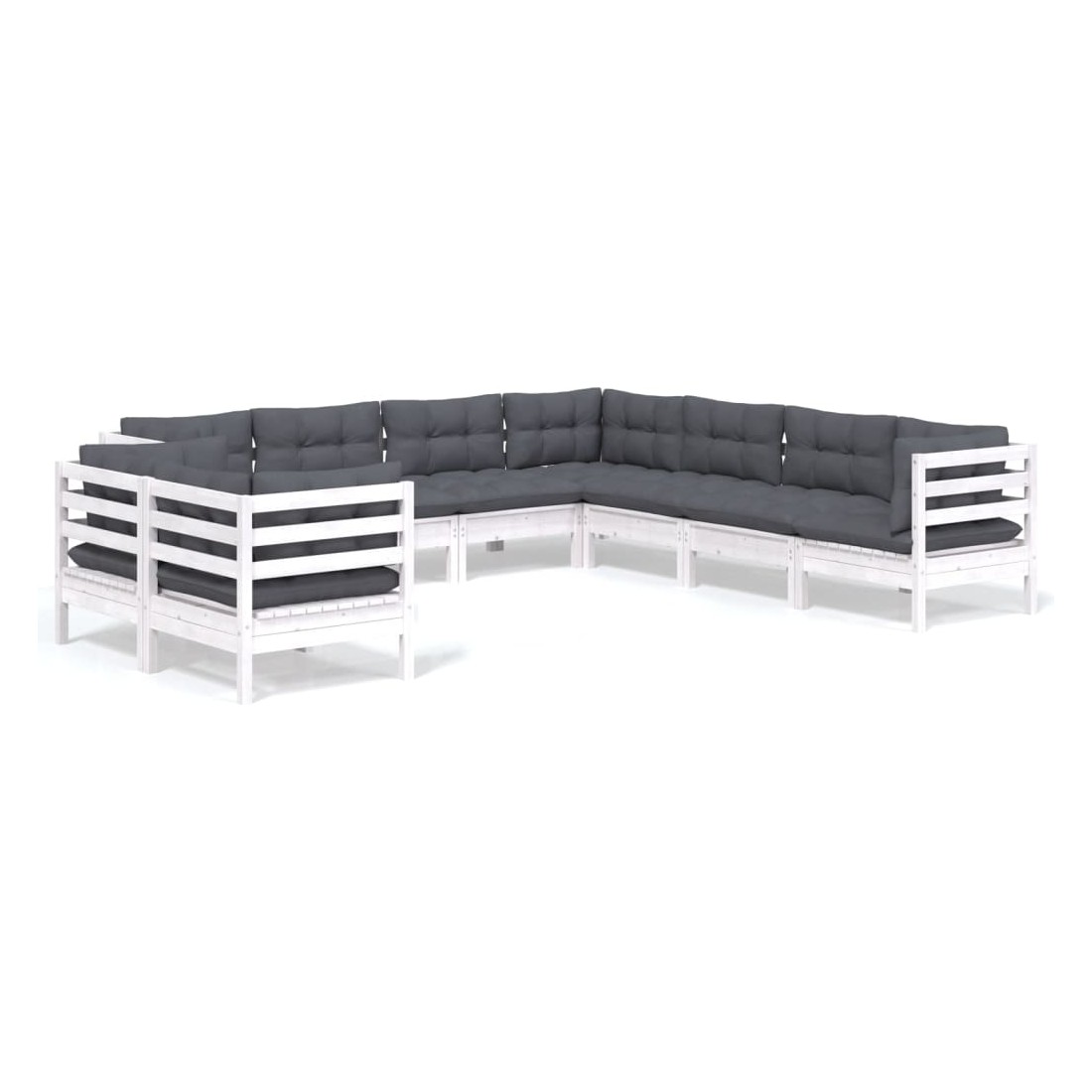 Ce salon de jardin est un excellent choix pour vous détendre et profiter du beau temps, faire une sieste ou discuter avec votre famille ou vos amis. Le salon de patio est fabriqué en bois de pin massif, ce qui le rend robuste et stable. Les coussins ajoutent un confort supplémentaire. Vous pouvez le combiner avec d’autres segments modulaires pour créer vos propres configurations de salon de jardin ! Remarque : afin de prolonger la durée de vie des meubles d'extérieur, nous vous recommandons de les protéger avec une housse imperméable.