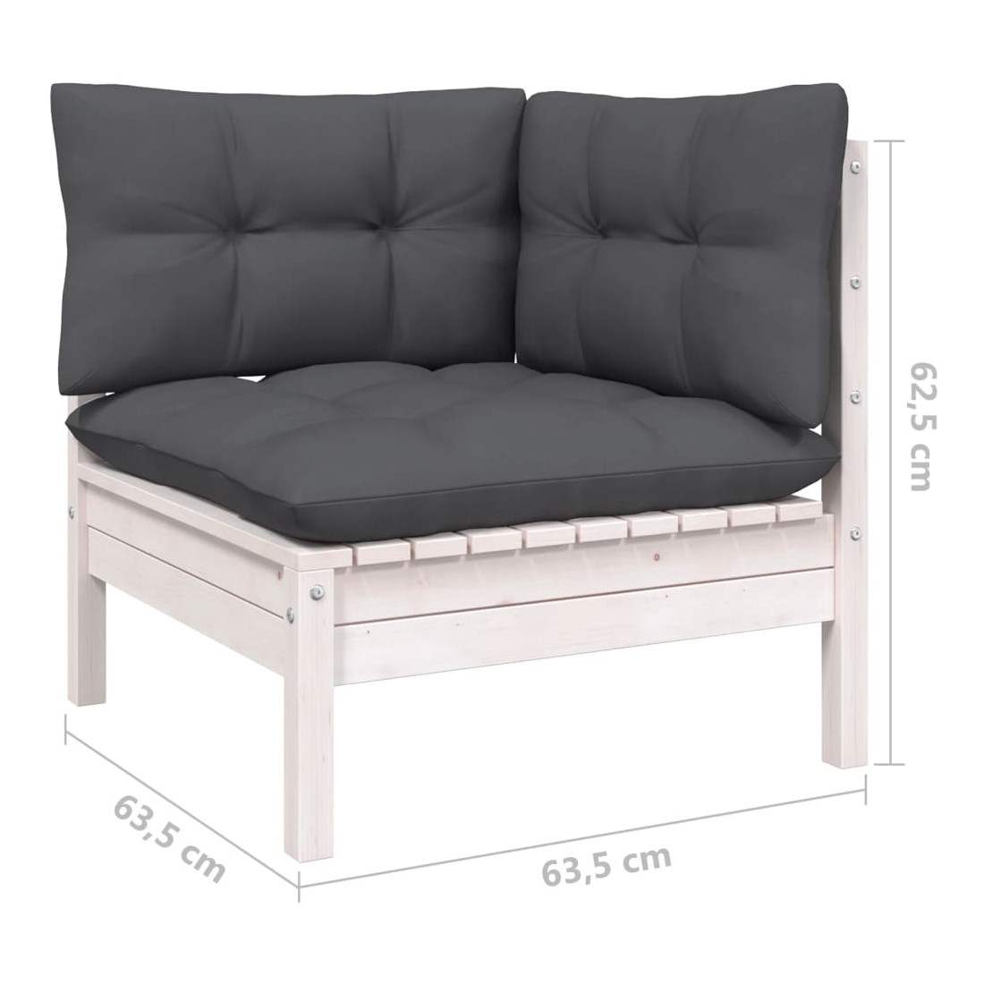 - Dimensions du canapé d'angle : 63,5 x 63,5 x 62,5 cm (l x P x H)