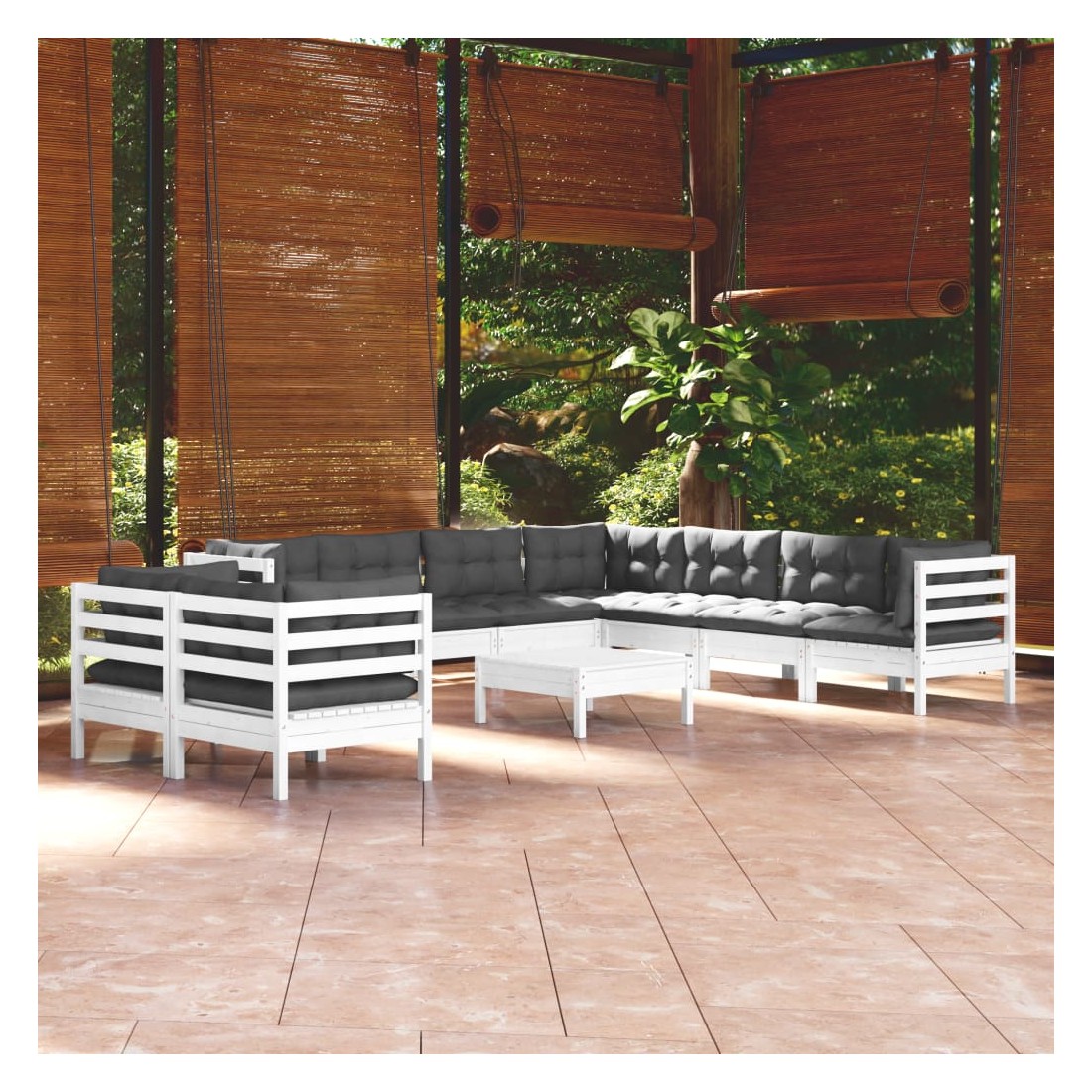 Ce salon de jardin est un excellent choix pour vous détendre et profiter du beau temps, faire une sieste ou discuter avec votre famille ou vos amis. Le salon de patio est fabriqué en bois de pin massif, ce qui le rend robuste et stable. Les coussins ajoutent un confort supplémentaire. Vous pouvez le combiner avec d’autres segments modulaires pour créer vos propres configurations de salon de jardin ! Remarque : afin de prolonger la durée de vie des meubles d'extérieur, nous vous recommandons de les protéger avec une housse imperméable.