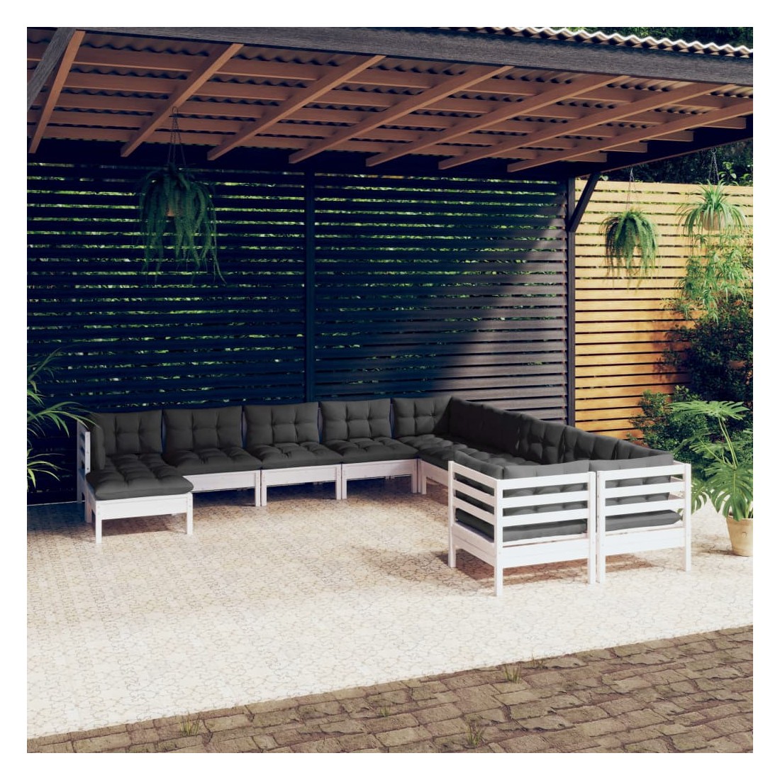 Cet ensemble de salon de jardin en bois est un choix excellent pour vous détendre et profiter du bon temps, faire une sieste ou discuter avec votre famille ou vos amis. Le salon de patio est fabriqué en bois de pin massif, ce qui le rend robuste et stable. Les coussins ajoutent un confort supplémentaire. Vous pouvez le combiner avec d’autres segments modulaires pour créer vos propres configurations de salon de jardin ! Remarque : afin de prolonger la durée de vie des meubles d'extérieur, nous vous recommandons de les protéger avec une housse imperméable.