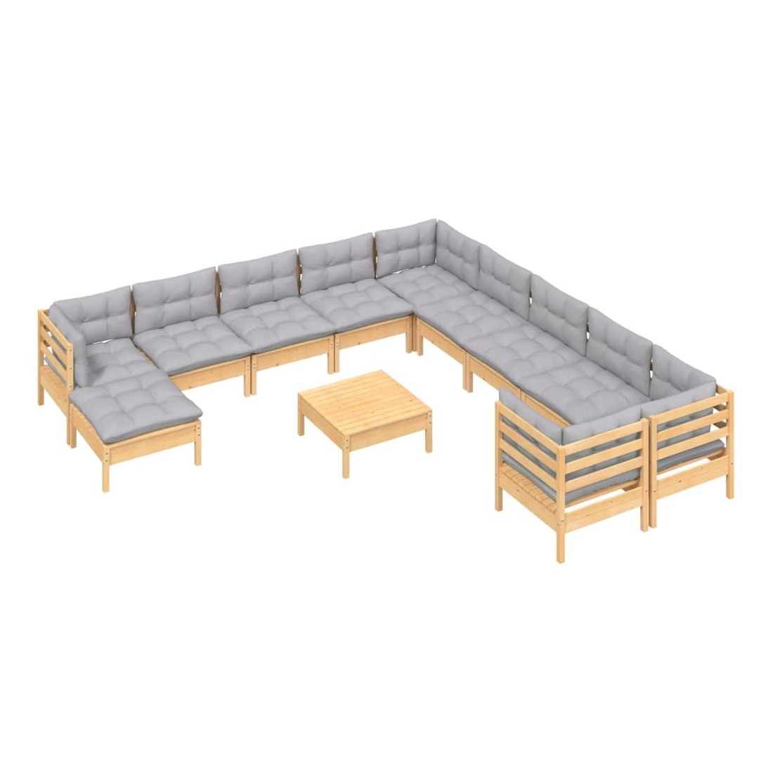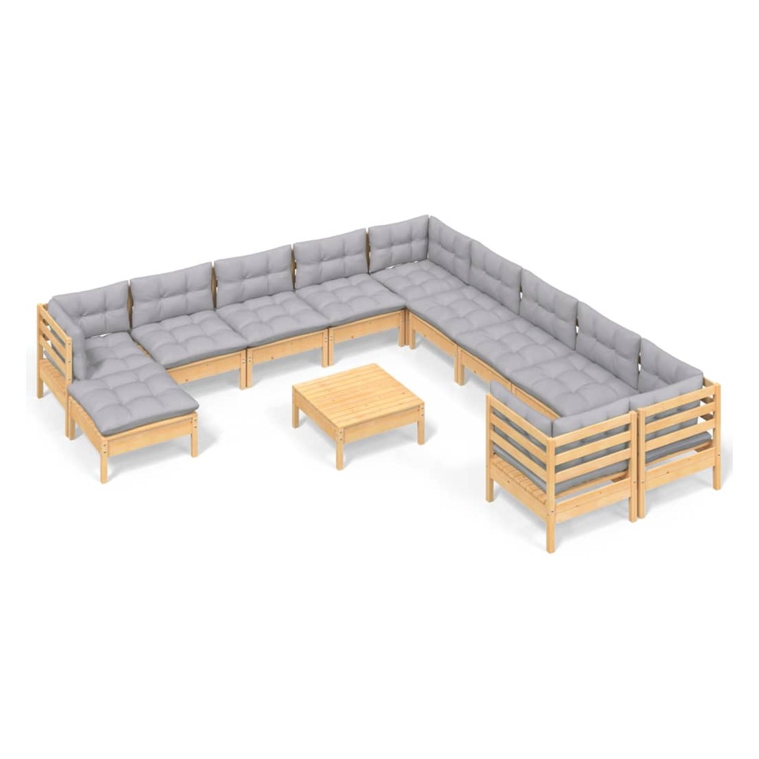 Salon de jardin 12 pcs avec coussins gris Bois de pin