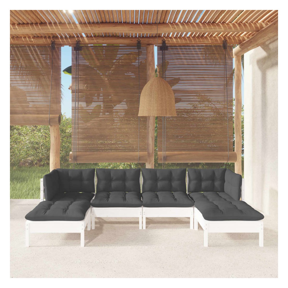 Cet ensemble de salon de jardin en bois est un choix excellent pour vous détendre et profiter du bon temps, faire une sieste ou discuter avec votre famille ou vos amis. Le salon de patio est fabriqué en bois de pin massif, ce qui le rend robuste et stable. Les coussins ajoutent un confort supplémentaire. Vous pouvez le combiner avec d’autres segments modulaires pour créer vos propres configurations de salon de jardin ! Remarque : afin de prolonger la durée de vie des meubles d'extérieur, nous vous recommandons de les protéger avec une housse imperméable.