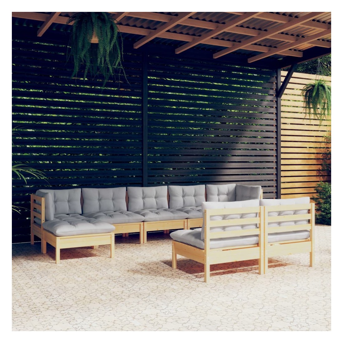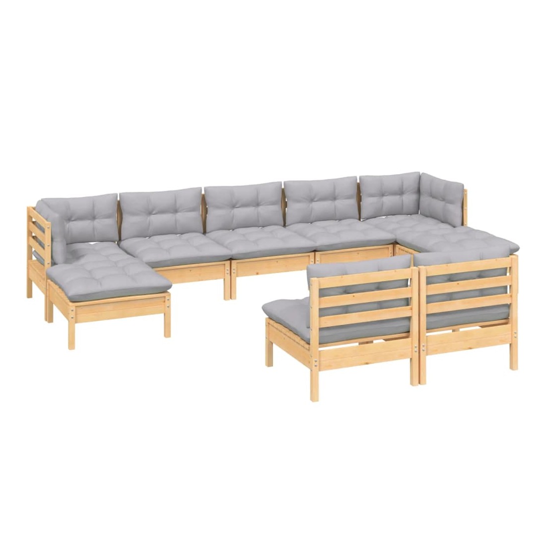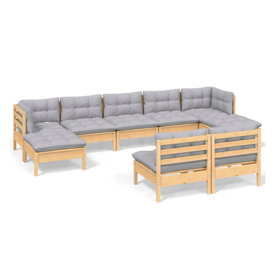 Cet ensemble de salon de jardin en bois est un choix excellent pour vous détendre et profiter du bon temps, faire une sieste ou discuter avec votre famille ou vos amis. Le salon de patio est fabriqué en bois de pin massif, ce qui le rend robuste et stable. Les coussins ajoutent un confort supplémentaire. Vous pouvez le combiner avec d’autres segments modulaires pour créer vos propres configurations de salon de jardin ! Remarque : afin de prolonger la durée de vie des meubles d'extérieur, nous vous recommandons de les protéger avec une housse imperméable.