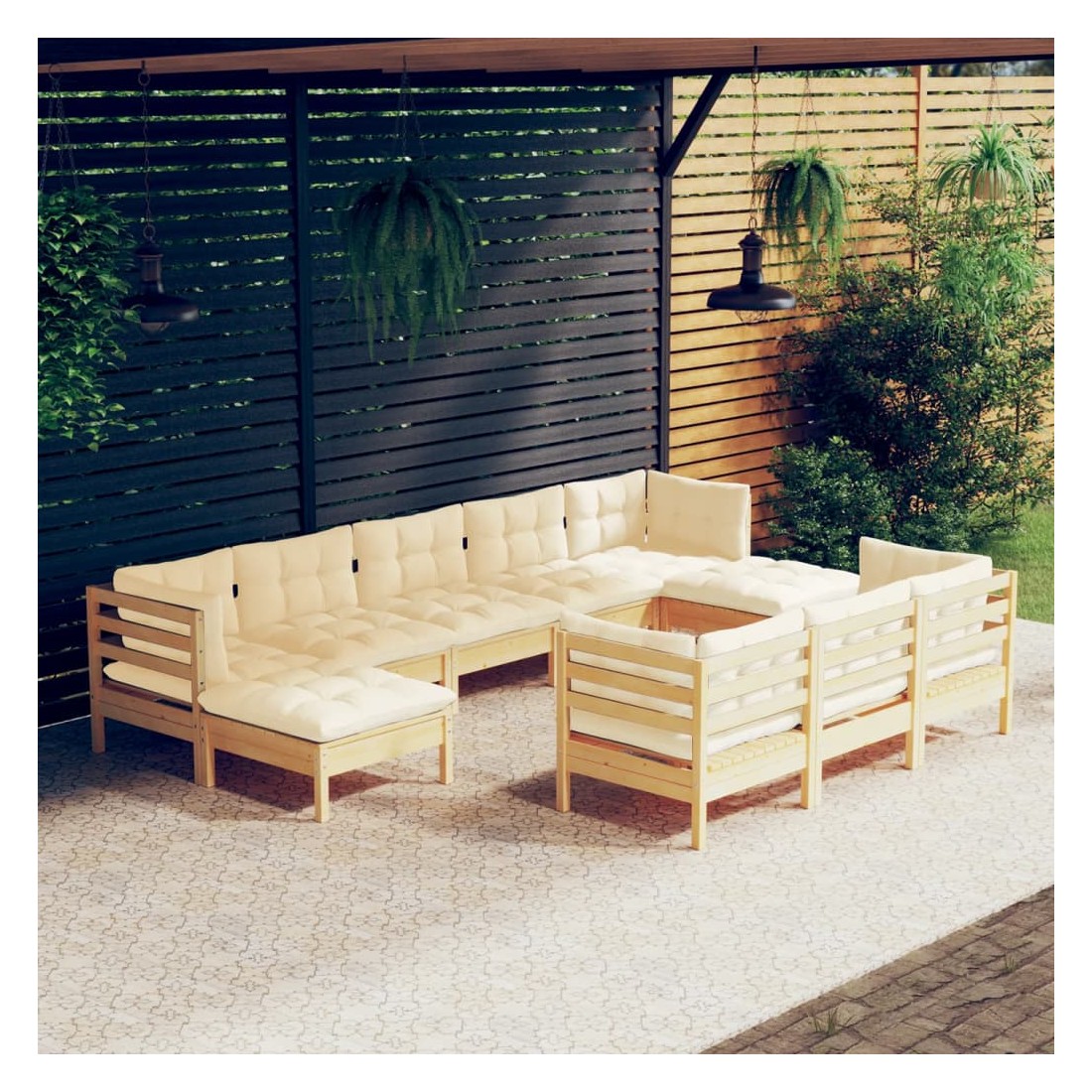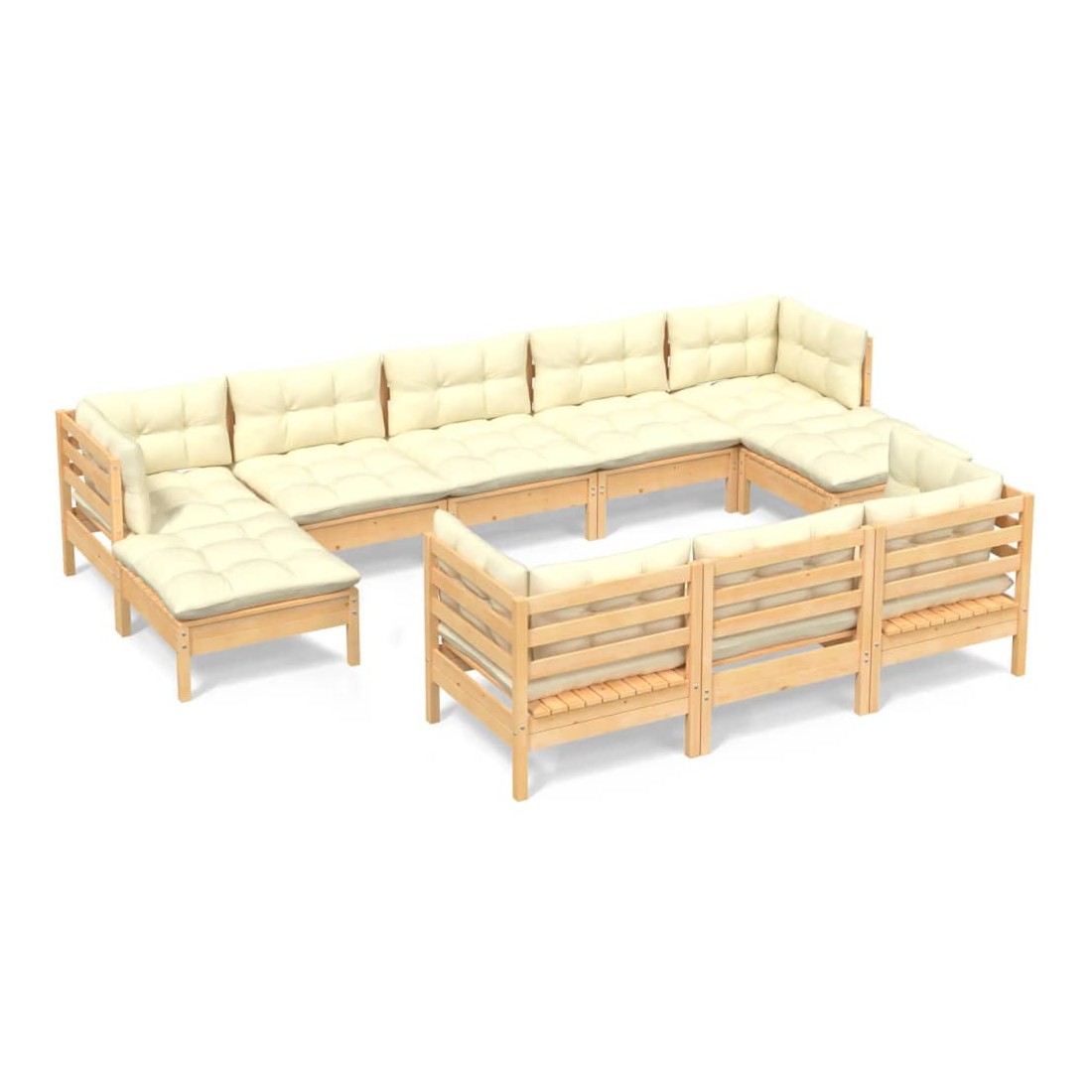 Salon de jardin 10 pcs avec coussins crème bois de pin massif