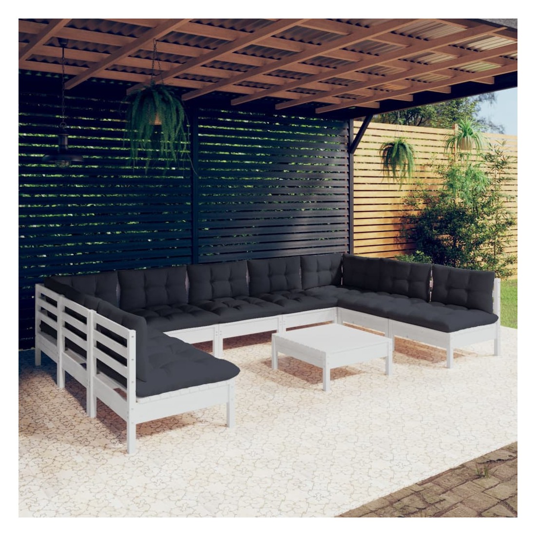 Ce salon de jardin est un excellent choix pour vous détendre et profiter du beau temps, faire une sieste ou discuter avec votre famille ou vos amis. Le salon de patio est fabriqué en bois de pin massif, ce qui le rend robuste et stable. Les coussins ajoutent un confort supplémentaire. Vous pouvez le combiner avec d’autres segments modulaires pour créer vos propres configurations de salon de jardin ! Remarque : afin de prolonger la durée de vie des meubles d'extérieur, nous vous recommandons de les protéger avec une housse imperméable.