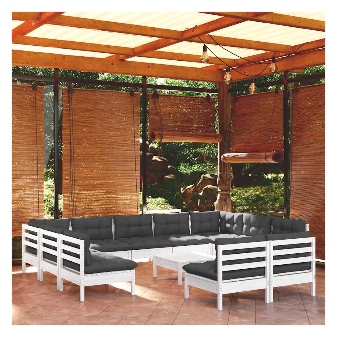 Ce salon de jardin est un excellent choix pour vous détendre et profiter du beau temps, faire une sieste ou discuter avec votre famille ou vos amis. Le salon de patio est fabriqué en bois de pin massif, ce qui le rend robuste et stable. Les coussins ajoutent un confort supplémentaire. Vous pouvez le combiner avec d’autres segments modulaires pour créer vos propres configurations de salon de jardin ! Remarque : afin de prolonger la durée de vie des meubles d'extérieur, nous vous recommandons de les protéger avec une housse imperméable.