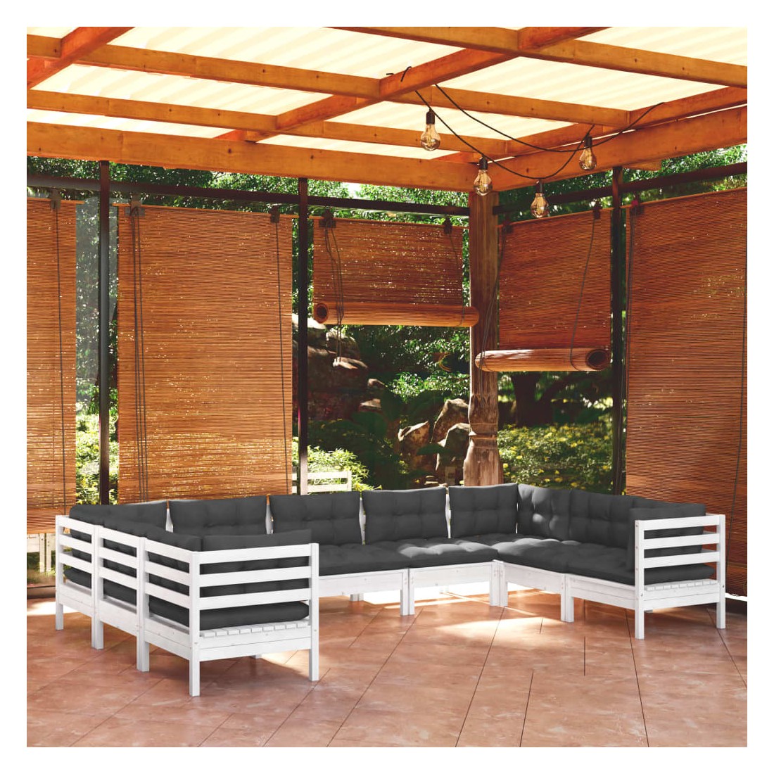 Cet ensemble de salon de jardin en bois est un choix excellent pour vous détendre et profiter du bon temps, faire une sieste ou discuter avec votre famille ou vos amis. Le salon de patio est fabriqué en bois de pin massif, ce qui le rend robuste et stable. Les coussins ajoutent un confort supplémentaire. Vous pouvez le combiner avec d’autres segments modulaires pour créer vos propres configurations de salon de jardin ! Remarque : afin de prolonger la durée de vie des meubles d'extérieur, nous vous recommandons de les protéger avec une housse imperméable.