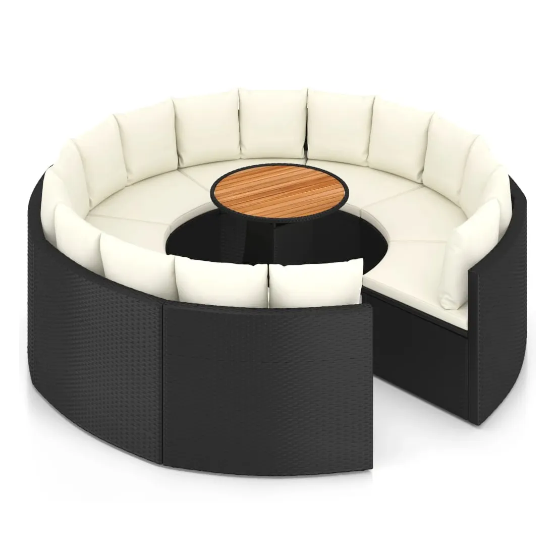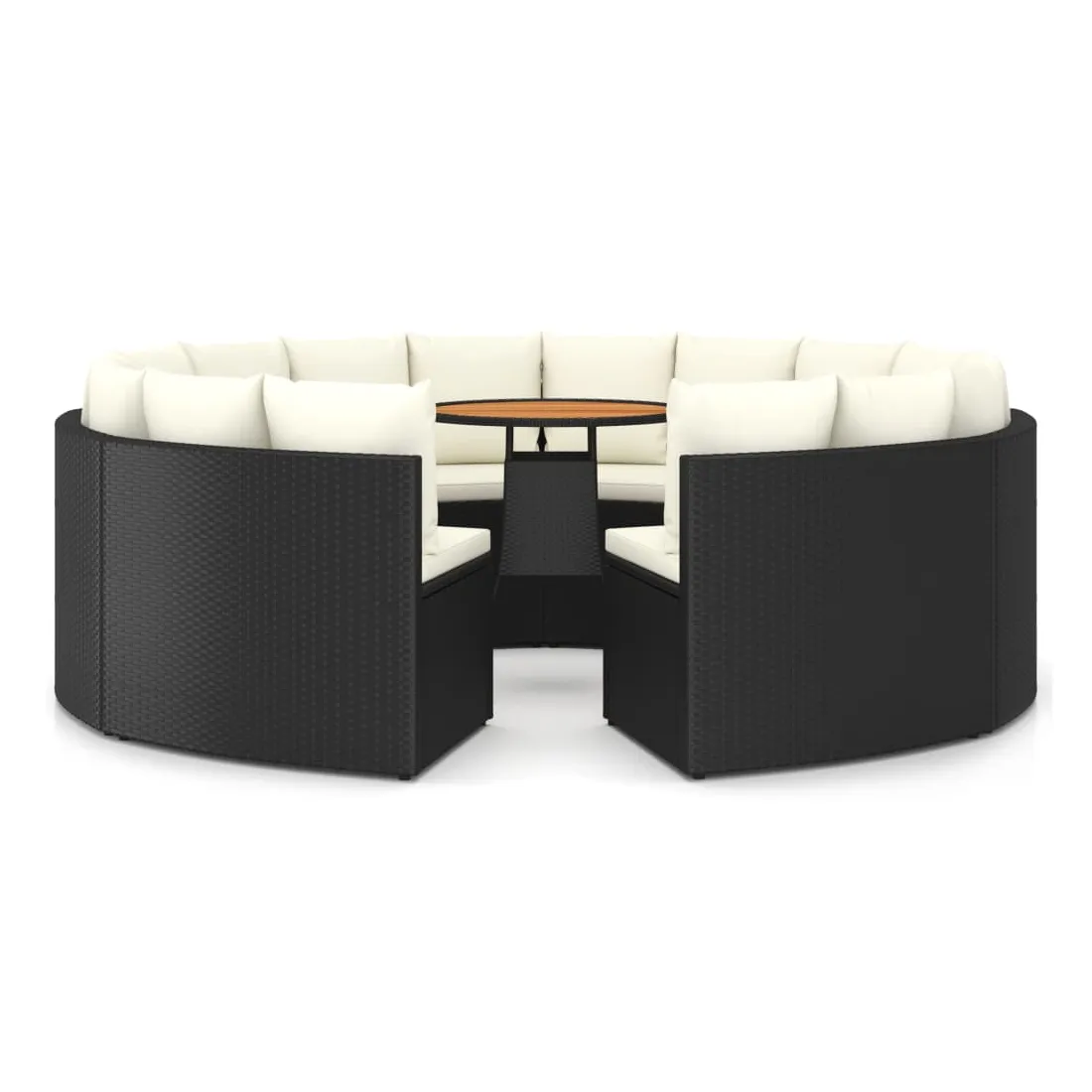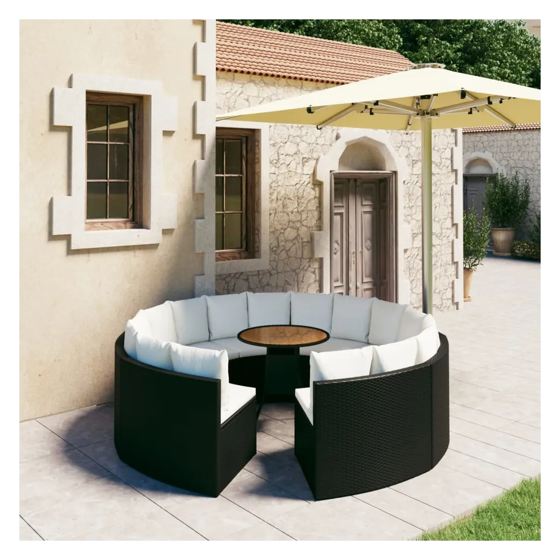 Salon de jardin 9 pcs avec coussins Résine tressée Noir