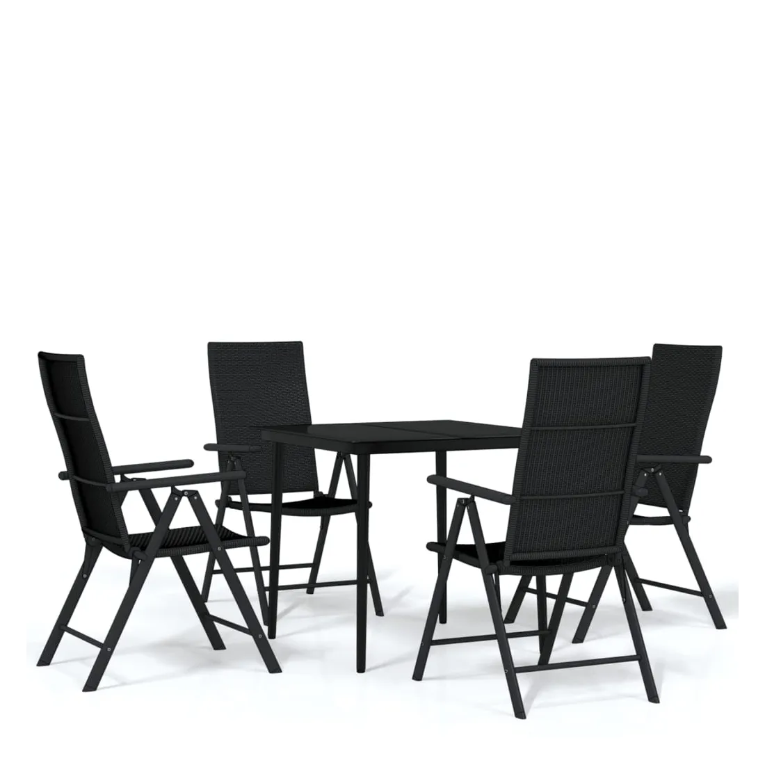 Créez une esthétique convaincante et uniforme dans votre espace extérieur avec cet ensemble de salle à manger de jardin ! Cette table de salle à manger de jardin est faite de cadre en acier enduit de poudre, ce qui la rend robuste et stable pour une utilisation quotidienne à l’extérieur. Le dessus de table en verre lisse est facile à nettoyer avec un chiffon humide et est parfait pour placer des repas, des boissons et d'autres objets décoratifs. Les chaises de patio sont en résine tressée, ce qui les rend légères et résistantes à l’eau. De plus, les dossiers des chaises sont inclinables sur 7 niveaux, ce qui vous permet de toujours trouver la position la plus confortable. Les chaises peuvent être pliées pour gagner de la place lorsqu'elles ne sont pas utilisées. Remarque : nous vous re