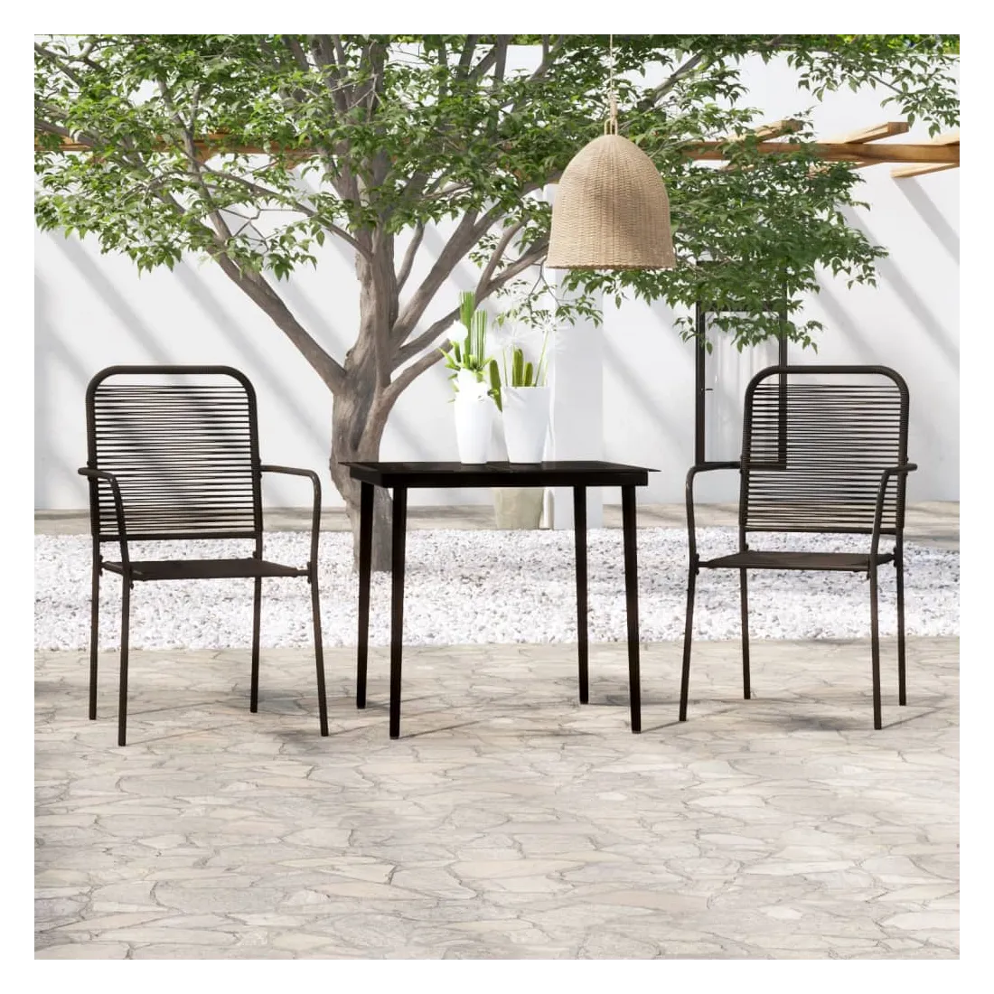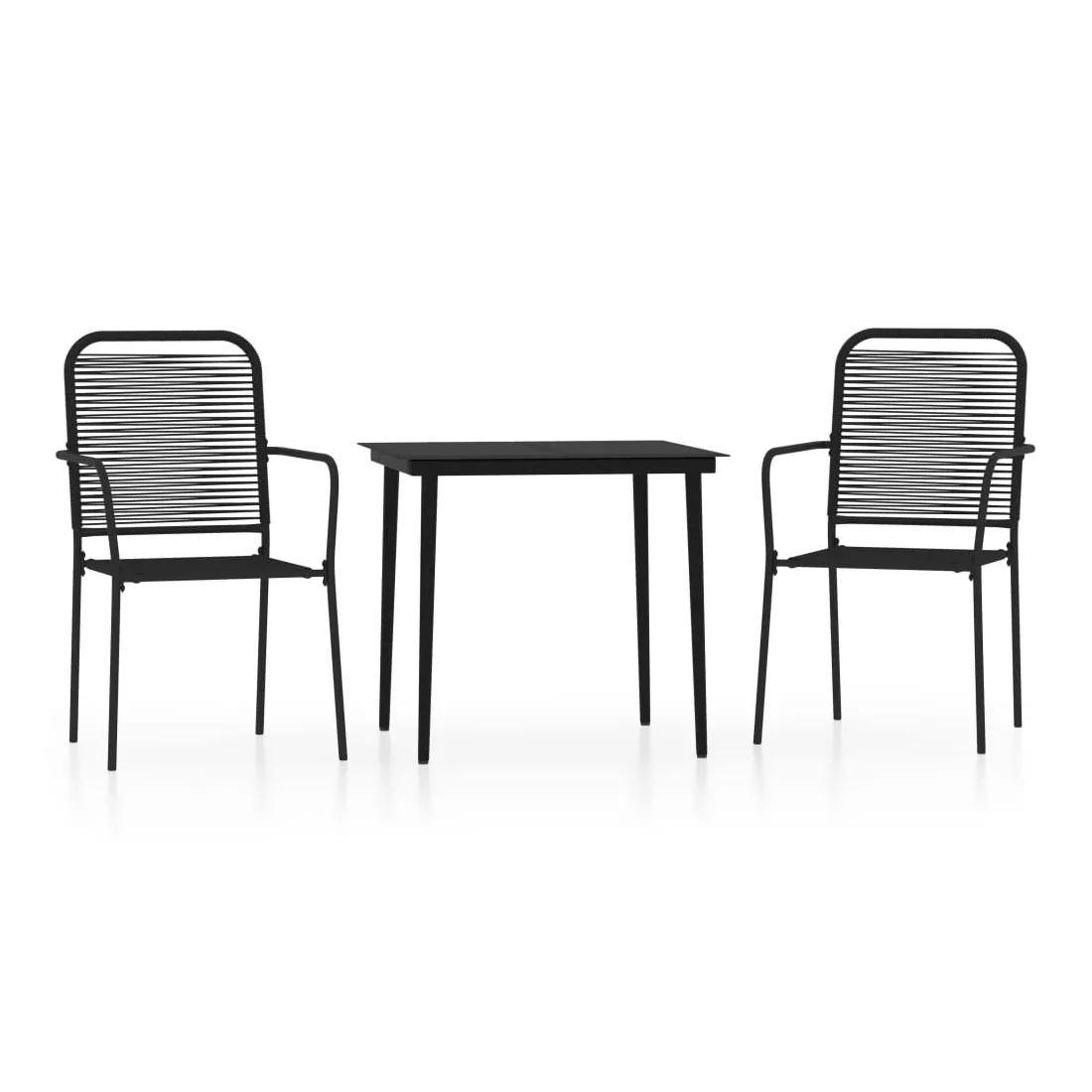 Cet ensemble de meubles de salle à manger tendance au design élégant et aux lignes épurées est un excellent choix pour votre jardin, patio, terrasse, cuisine et même salle à manger. L'élégance simpliste de cet ensemble de salle à manger rend votre dîner quotidien spécial. Cet ensemble de salle à manger de jardin dispose d’un cadre en acier enduit de poudre qui rend la table et les chaises stables et durables. Le dossier et le siège sont fabriqués en corde de coton torsadée, qui est douce au toucher et robuste pour une utilisation à long terme. De plus, la table est dotée d'un dessus en verre trempé, facile à nettoyer avec un chiffon humide et parfait pour placer des repas, des boissons et d'autres objets décoratifs. Remarque : afin de prolonger la durée de vie des meubles d'extérieur, nous vous recommandons de les protéger avec une housse imperméable.