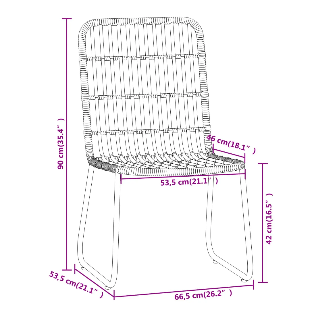 • Matériau : résine tressée, acier enduit de poudre