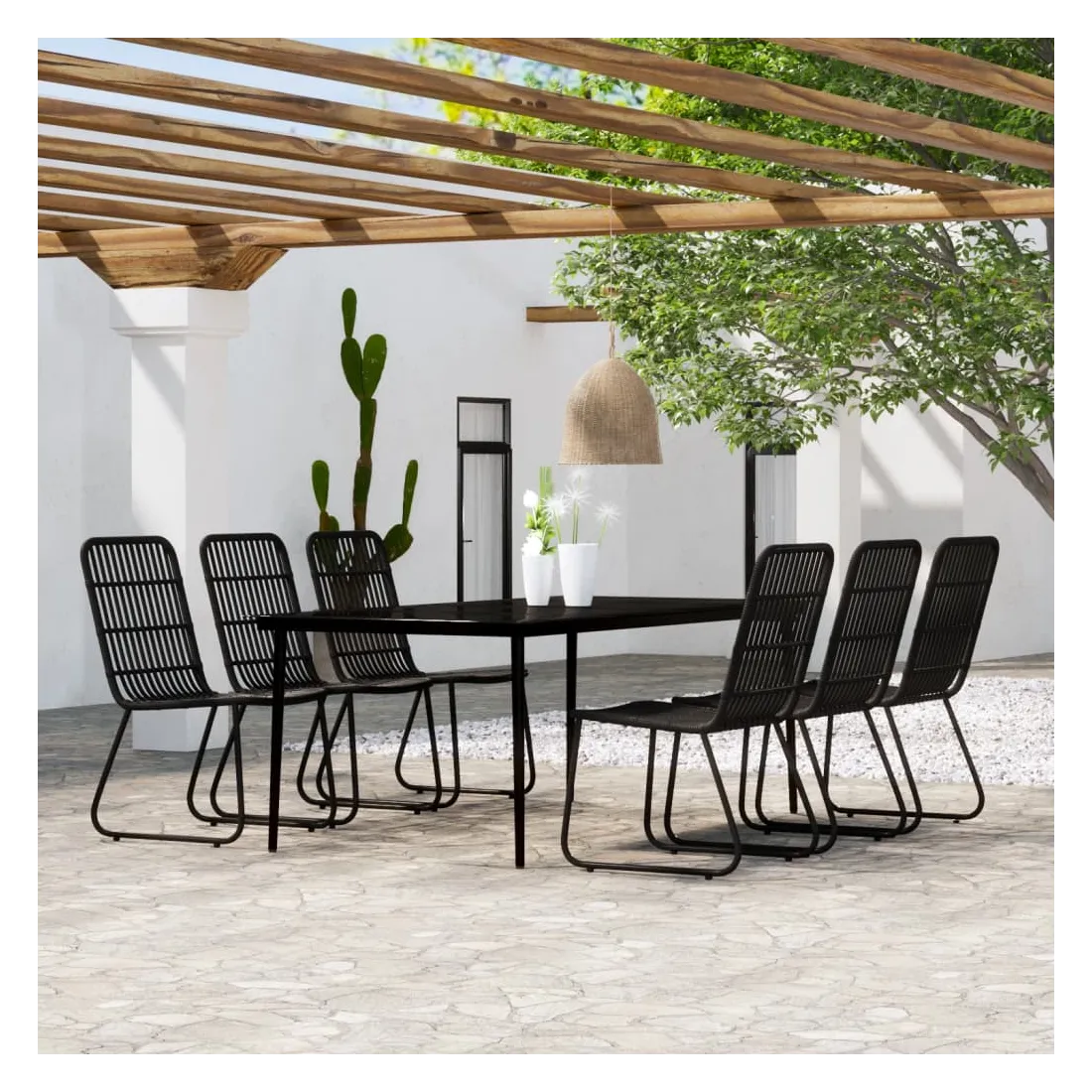 vidaXLCet ensemble de salle à manger de jardin est conçu pour être le point de mire de votre jardin ou patio ! Le cadre en acier rend la table et les chaises robustes et stables. Comme l’ensemble est également léger, tous les articles sont faciles à déplacer. De plus, le dessus de table en verre lisse est facile à nettoyer à l'aide d'un chiffon humide et est parfait pour placer des repas, des boissons et d'autres objets décoratifs. Les chaises de jardin sont fabriquées en résine tressée, résistante aux intempéries et aux rayons UV. De plus, les dossiers incurvés ajoutent un confort d'assise supplémentaire aux chaises. Remarque : afin de prolonger la durée de vie des meubles d'extérieur, nous vous recommandons de les protéger avec une housse imperméable.